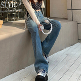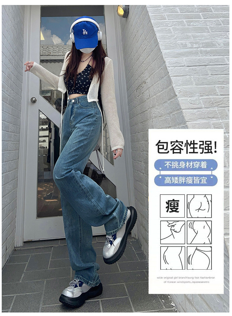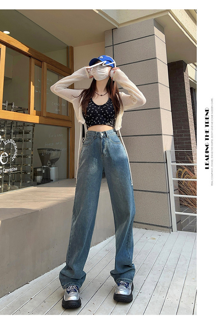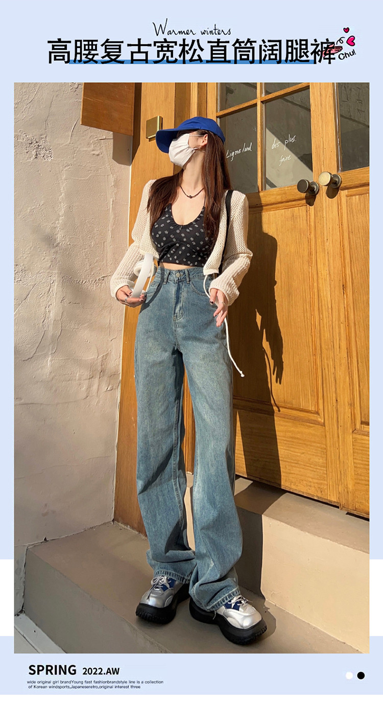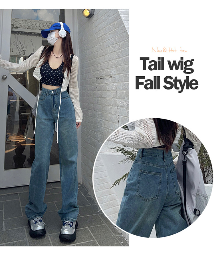 Осенние ретро джинсы, штаны, высокая талия, свободный прямой крой, по фигуре