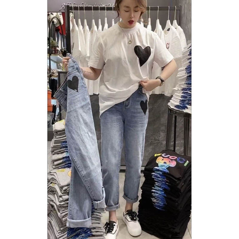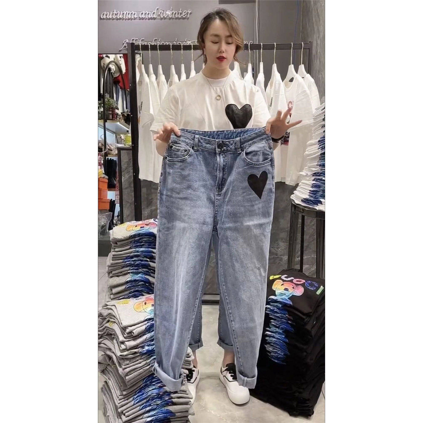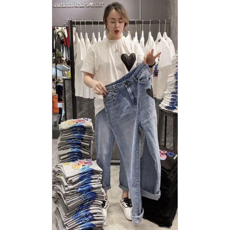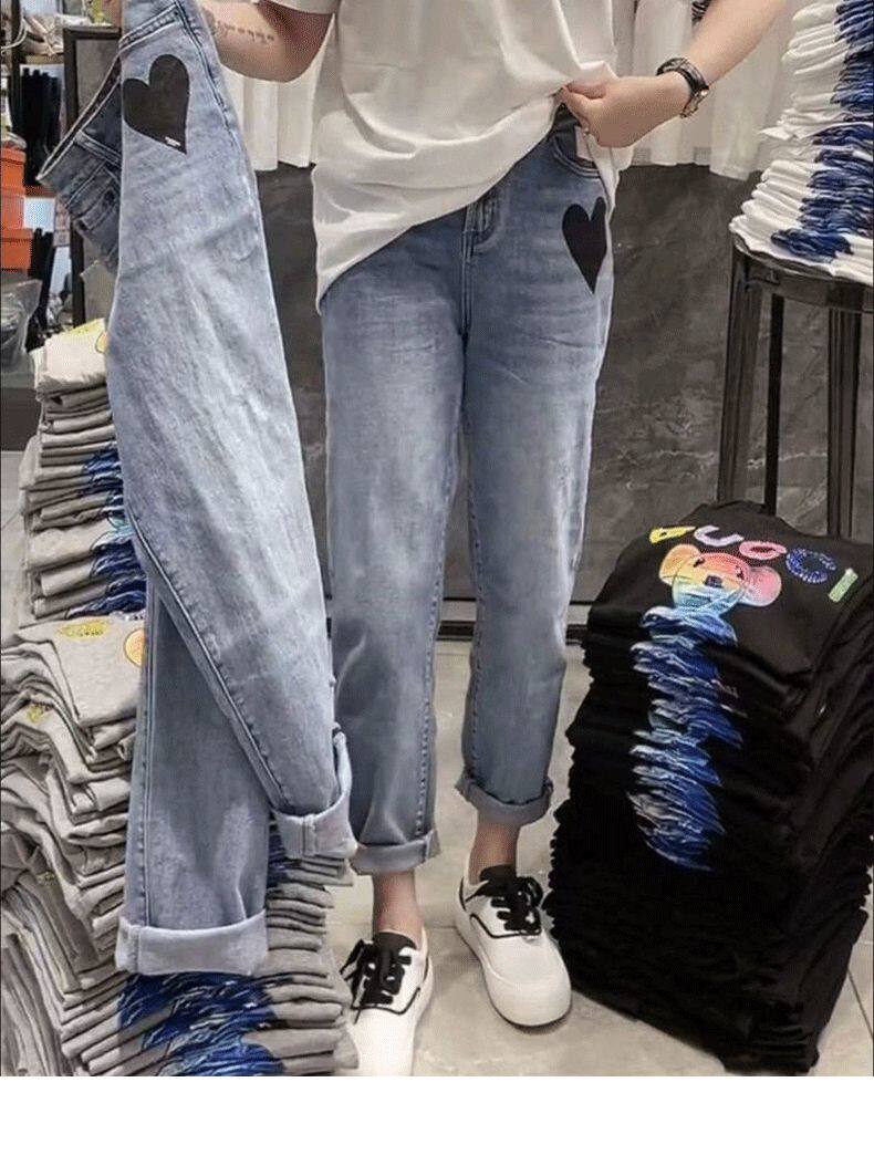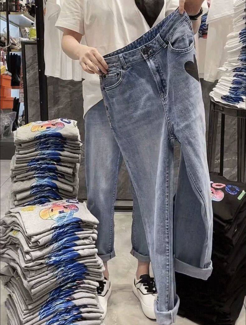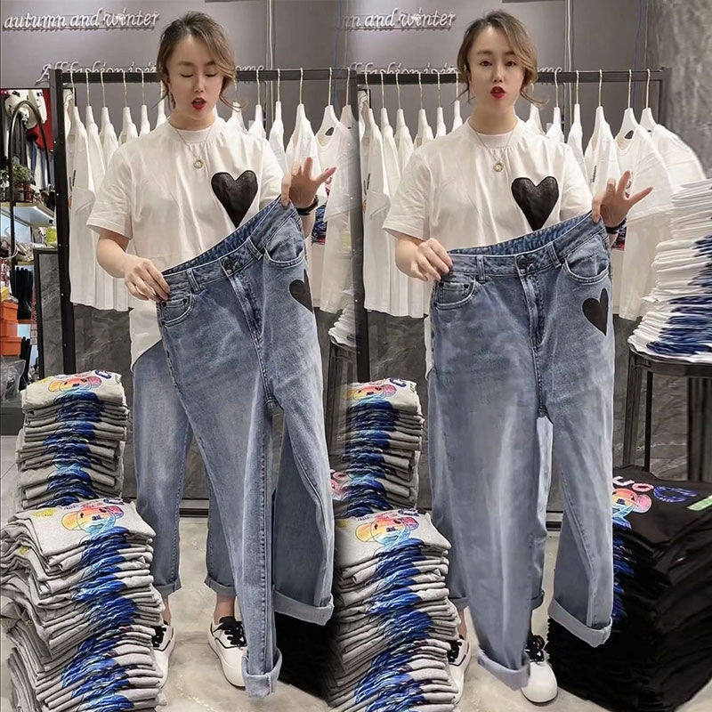 Штаны, джинсы, высокая талия, свободный прямой крой, 2023, осенние, в корейском стиле, по фигуре