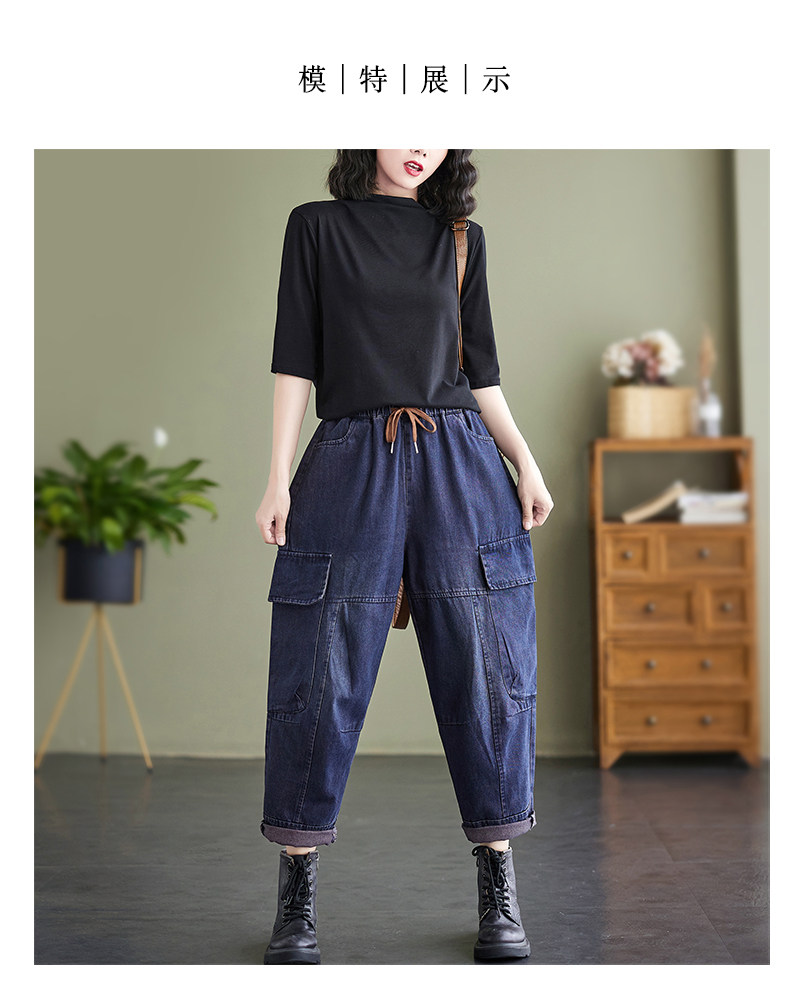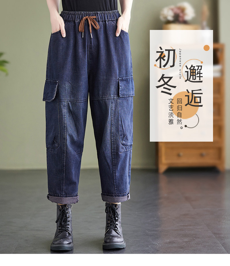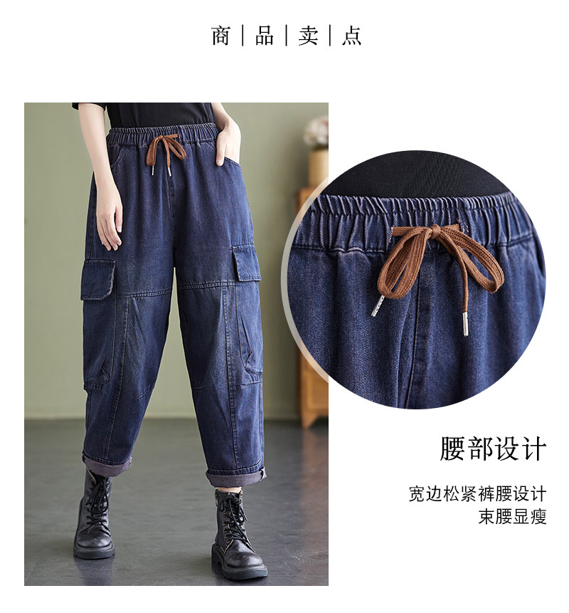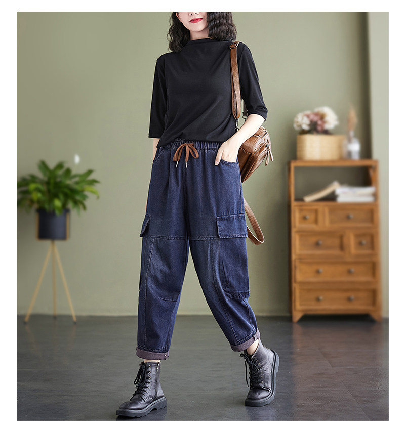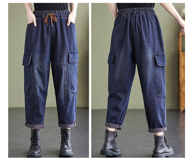 Ретро джинсы, осенние штаны, большой размер, высокая талия, на шнурках