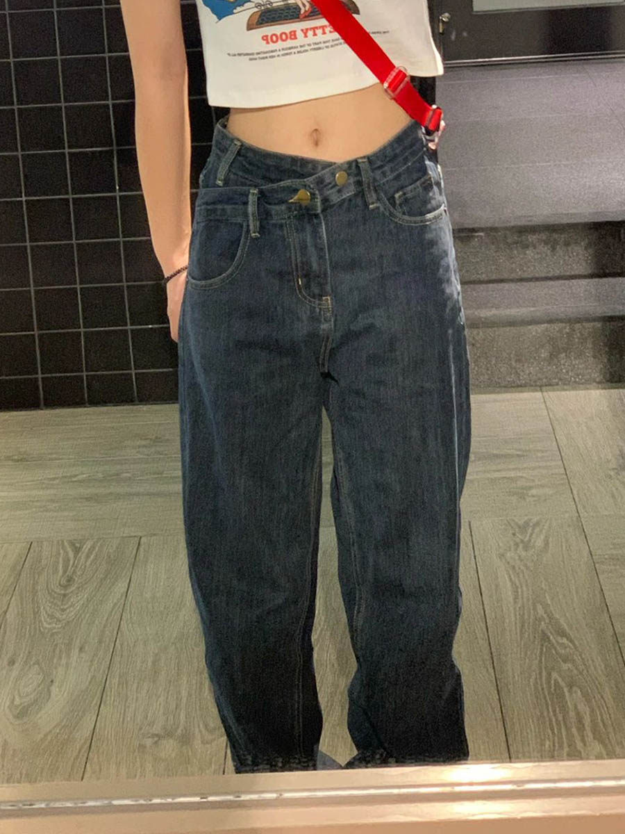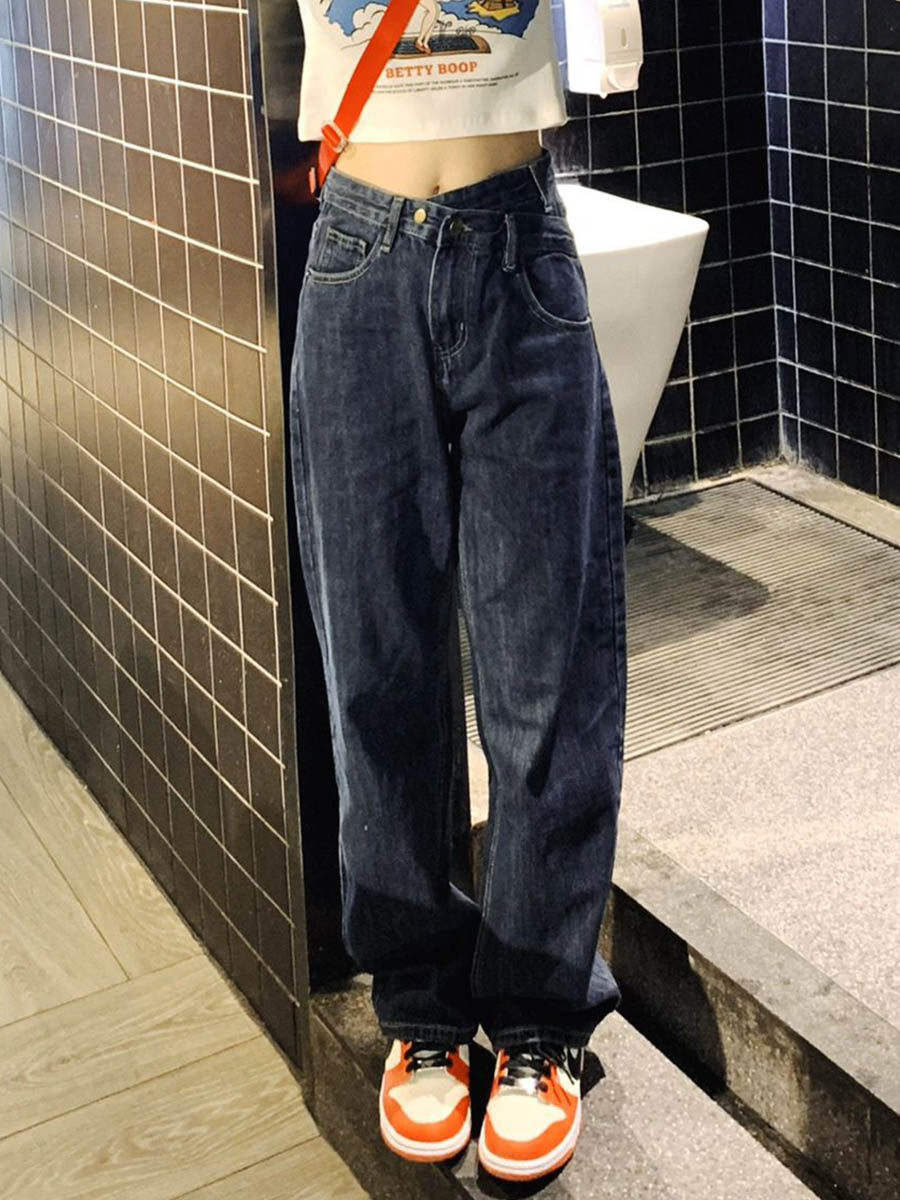 Tide, прямые свободные джинсы, осенние сексуальные штаны, большой размер, высокая талия, свободный крой
