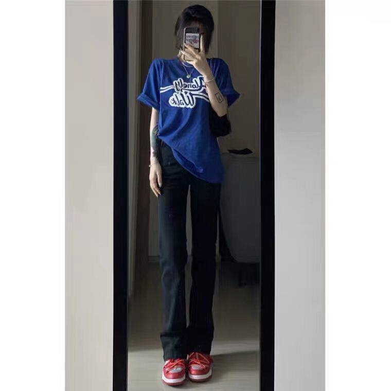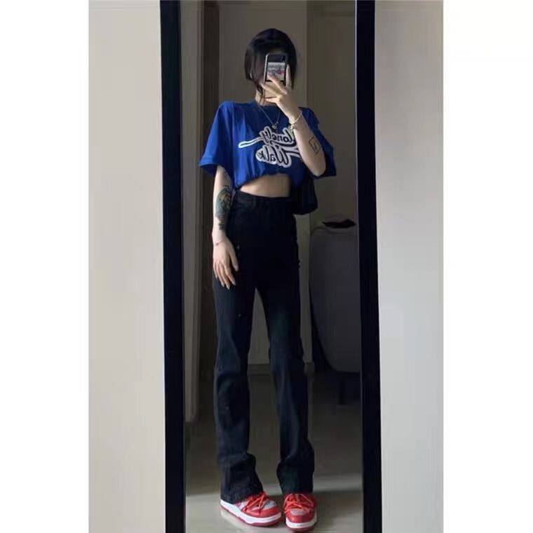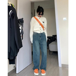 Осенние синие цветные прямые свободные джинсы, дизайнерские приталенные штаны, 2025 года, высокая талия, тренд сезона