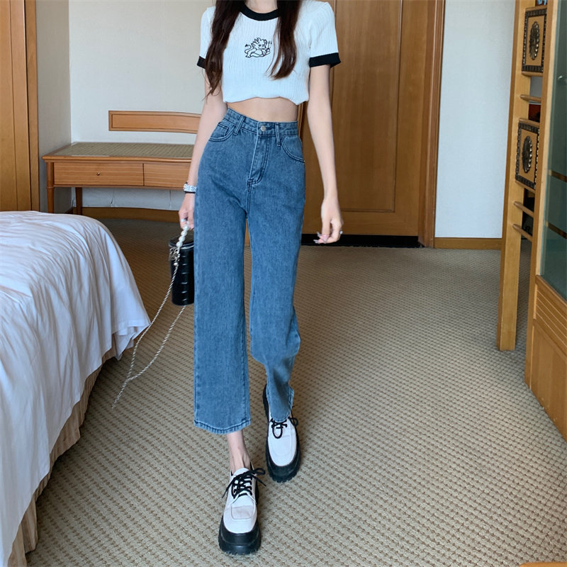 Ретро весенние джинсы, приталенные штаны, подходит для подростков, свободный прямой крой, высокая талия, в корейском стиле