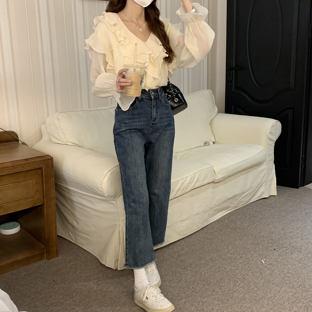 Цзин Ковбой Блю Просто сопоставьте топ Yi, он выглядит хорошо и выглядит хорошо