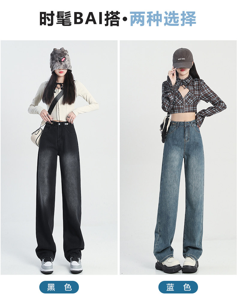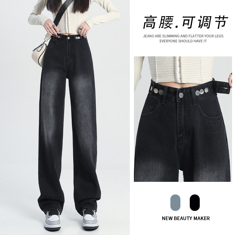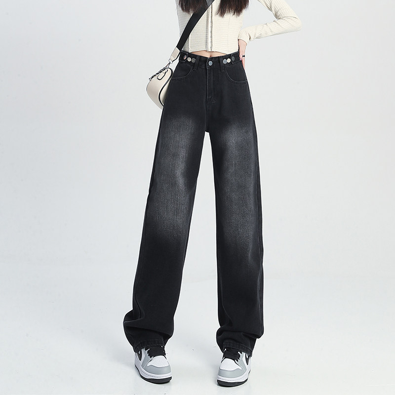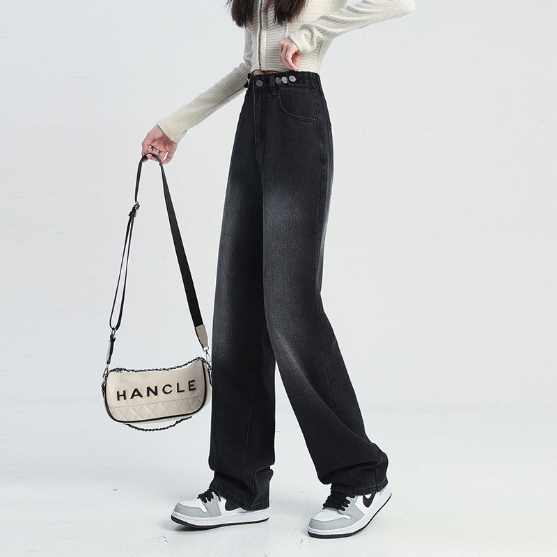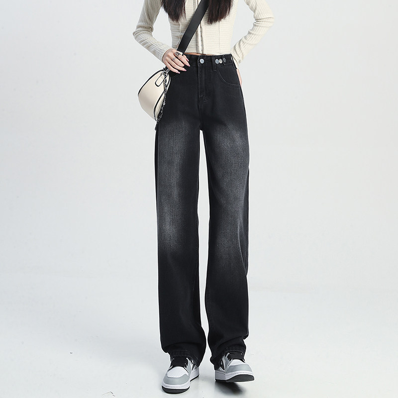 Штаны, осенние прямые свободные джинсы, свободный крой