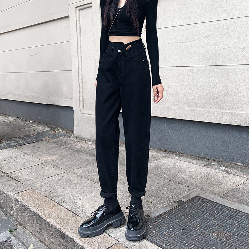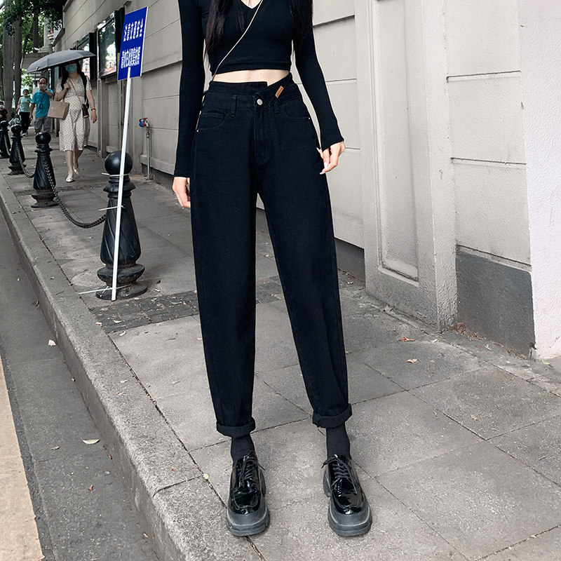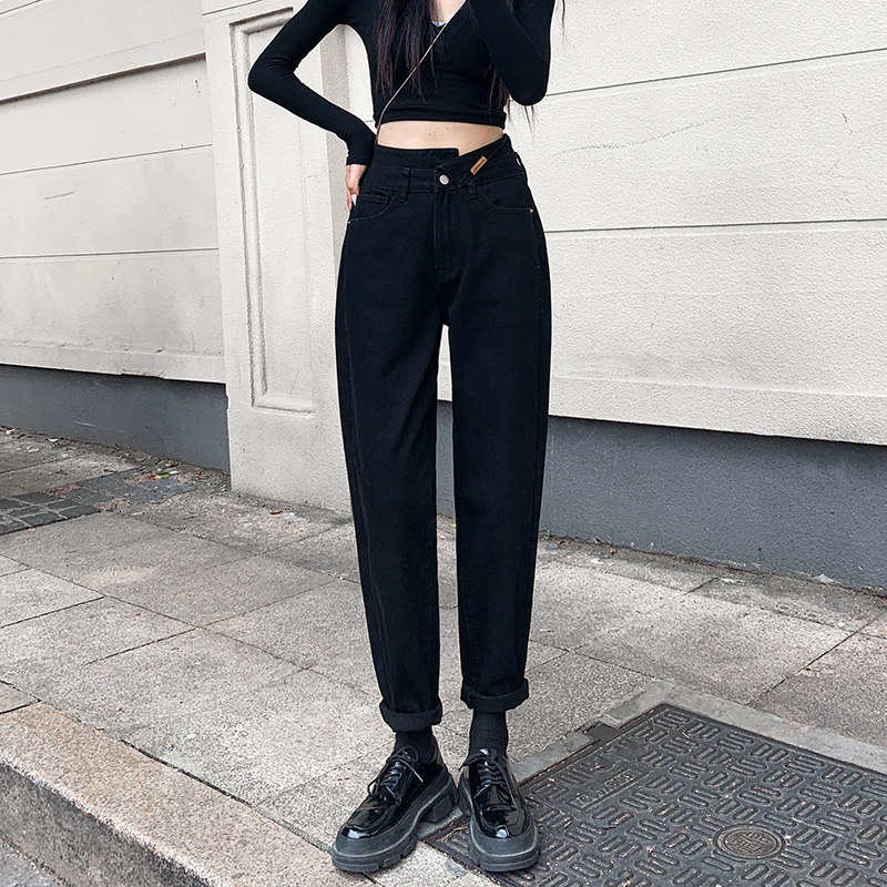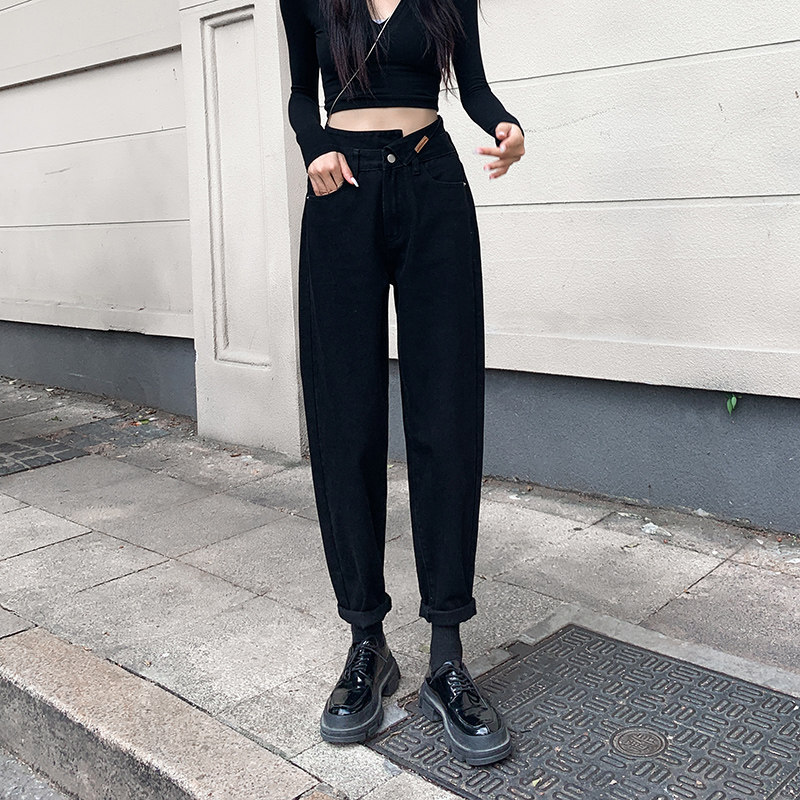 Черные штаны, джинсы, приталенные леггинсы, осенние, высокая талия, свободный прямой крой