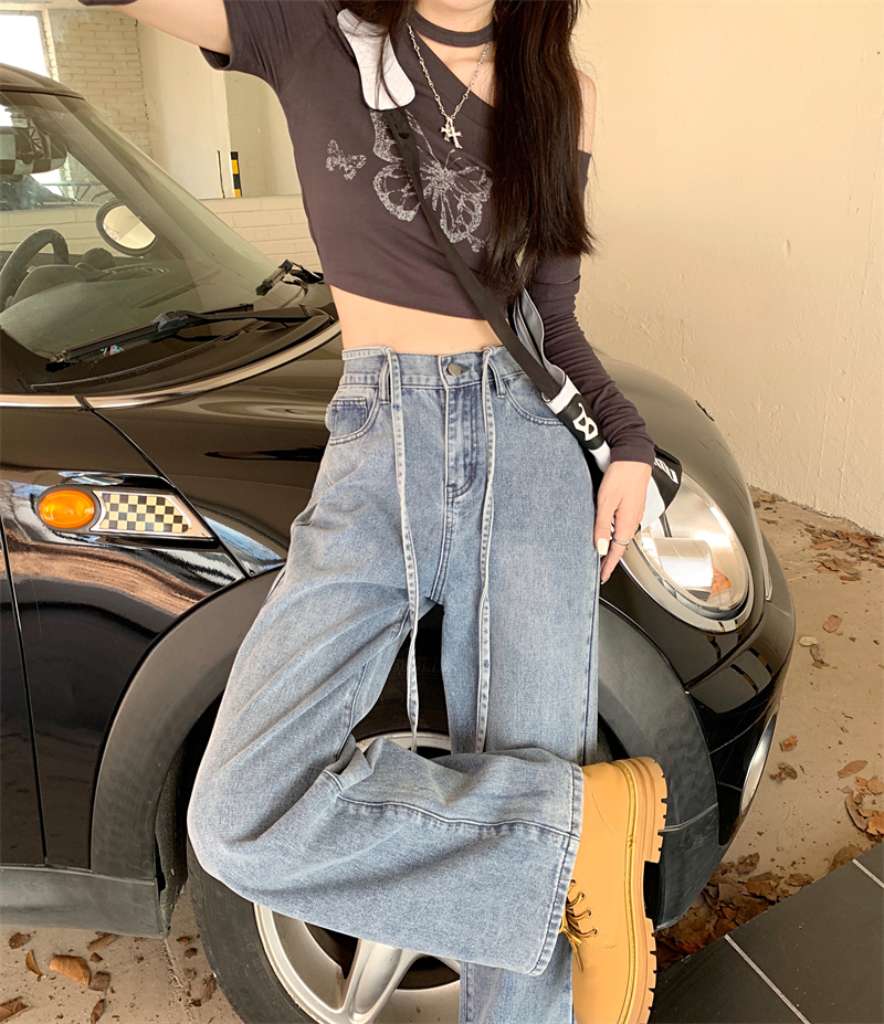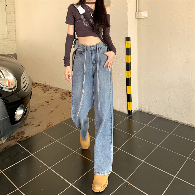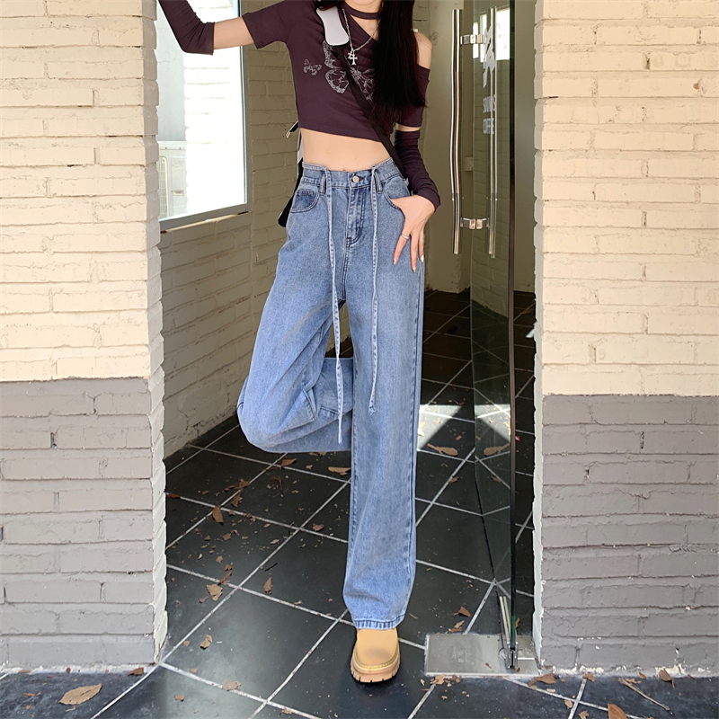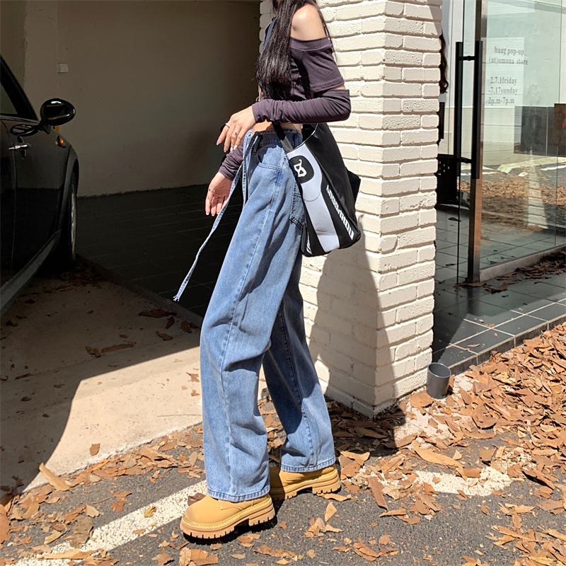Tide, ретро прямые свободные джинсы, осенние дизайнерские штаны, свободный прямой крой, высокая талия, тренд сезона, большой размер