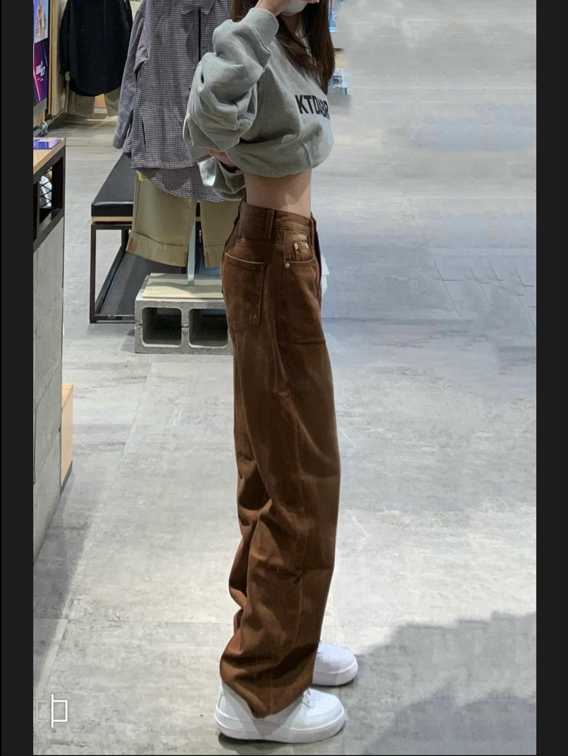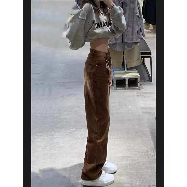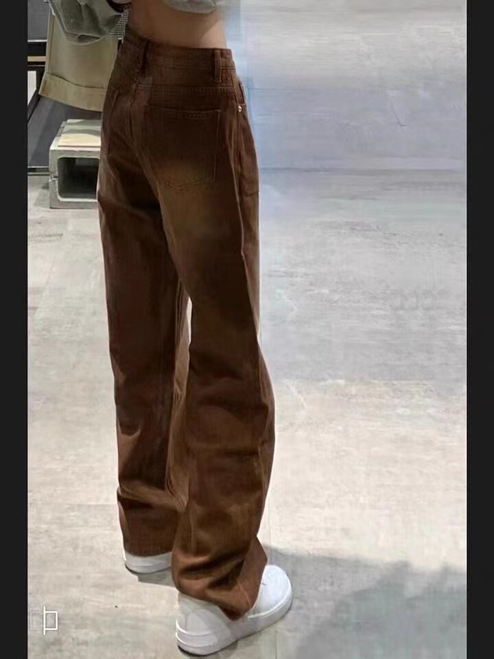 Цветные осенние джинсы, штаны, в американском стиле, размер, по фигуре, свободный прямой крой, высокая талия