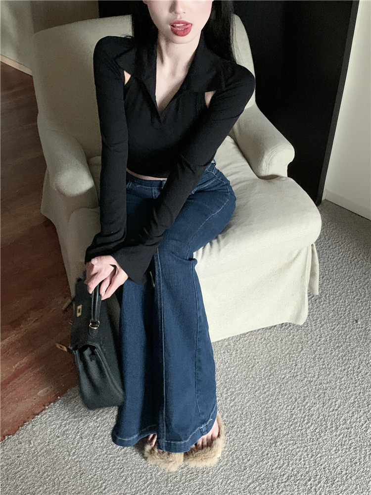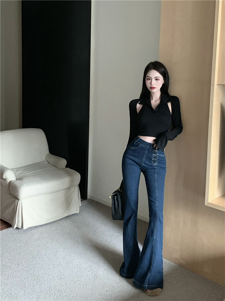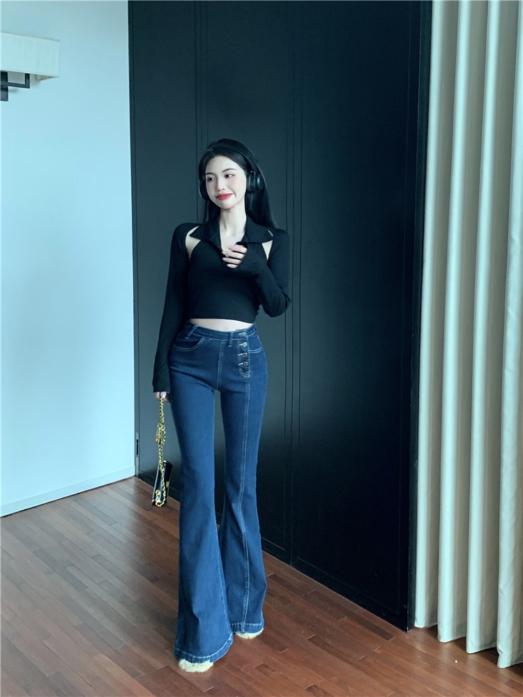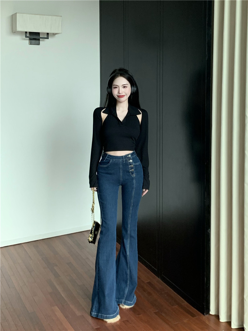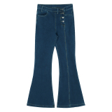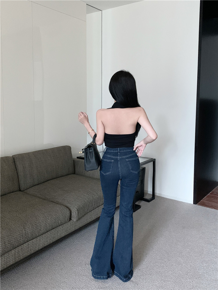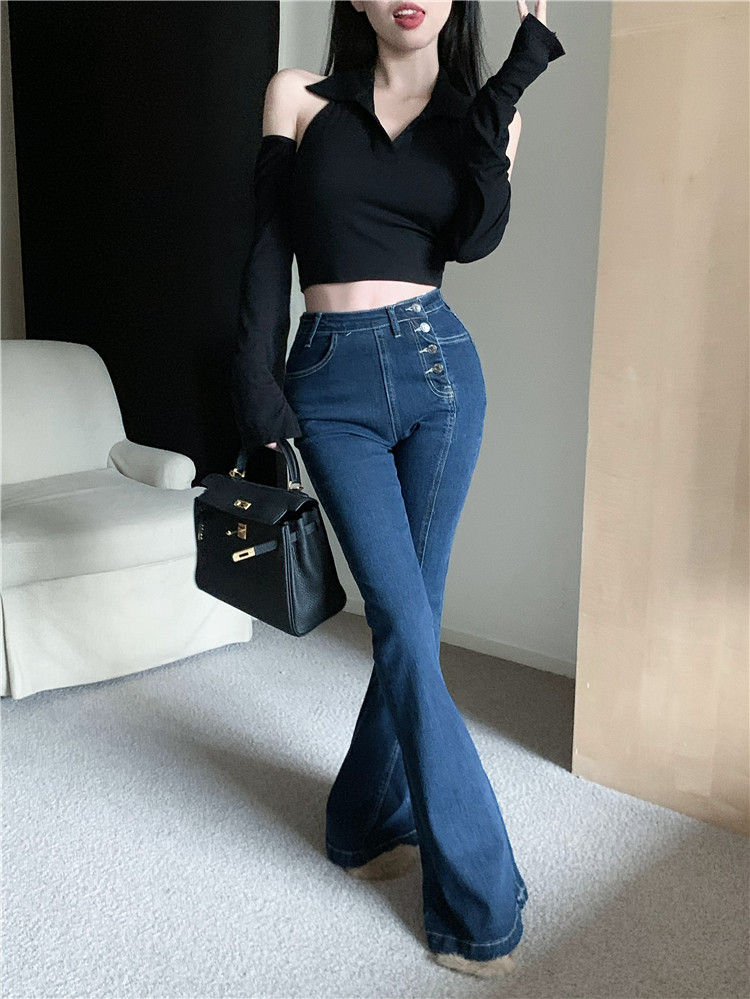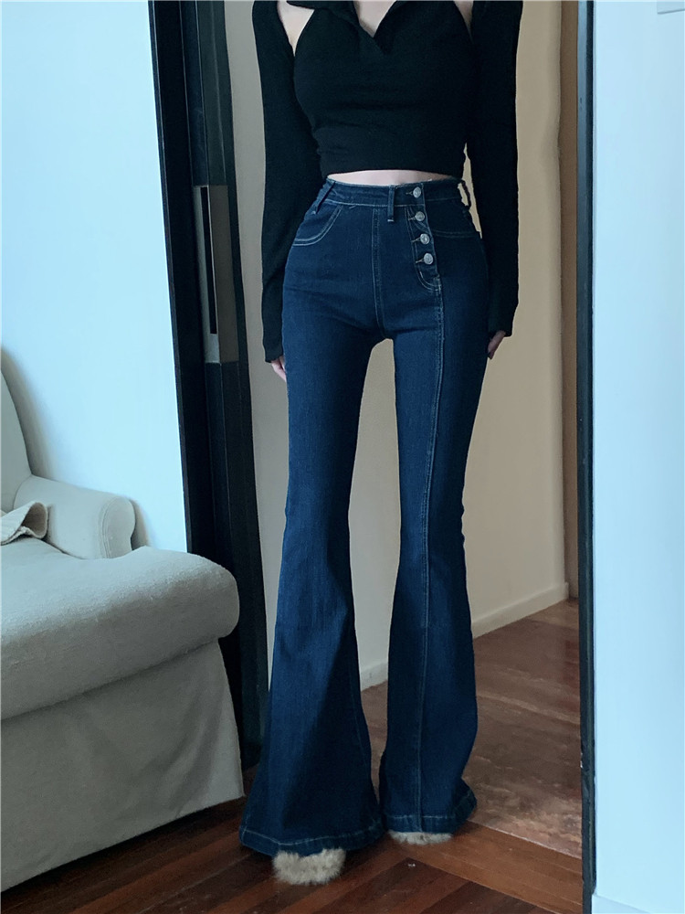 Ретро джинсы, синие штаны, приталенные штаны-клёш, в обтяжку, высокая талия, свободный крой