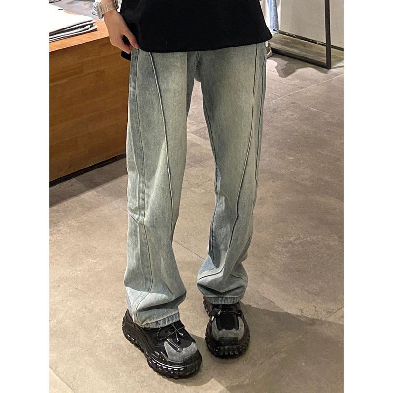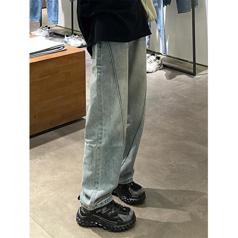 Ретро демисезонные джинсы, штаны, брендовые леггинсы, в американском стиле, высокая талия, свободный прямой крой, подходит для подростков