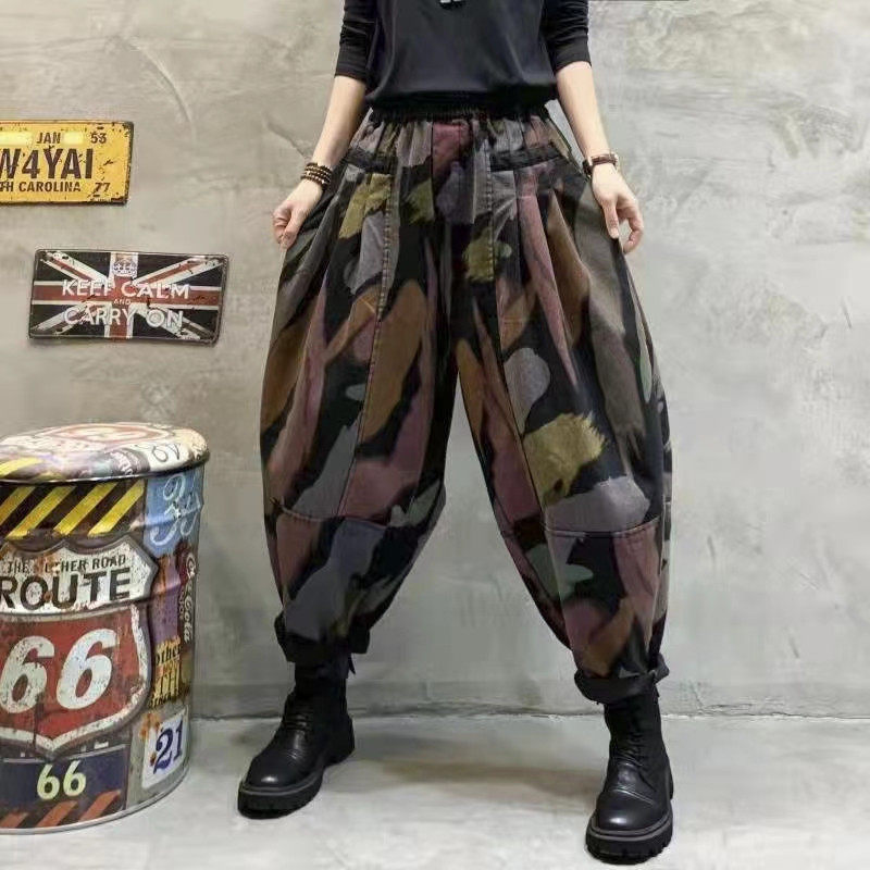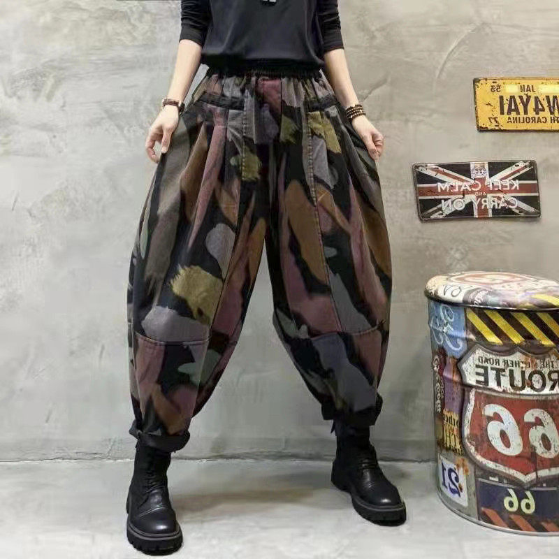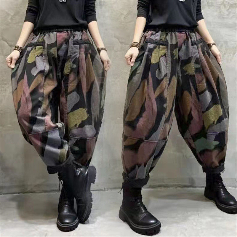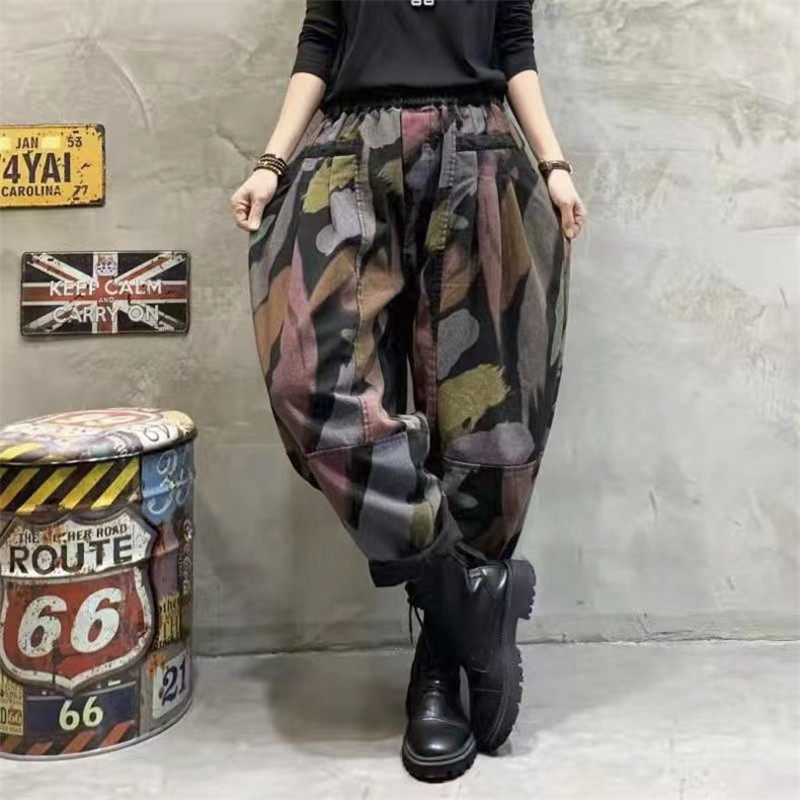 Ретро осенние джинсы-шаровары, штаны, большой размер, свободный крой