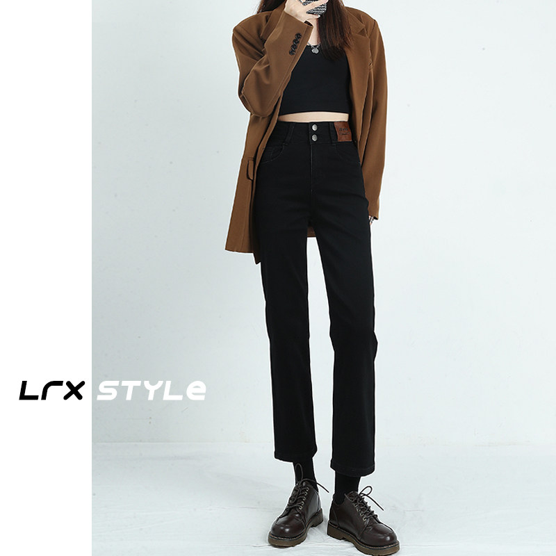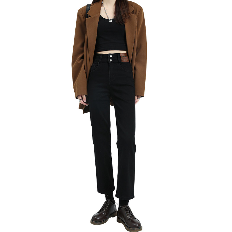 Осенние черные джинсы, приталенные штаны, свободный прямой крой, высокая талия, 2024 года, подходит для подростков