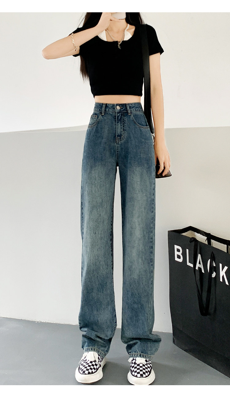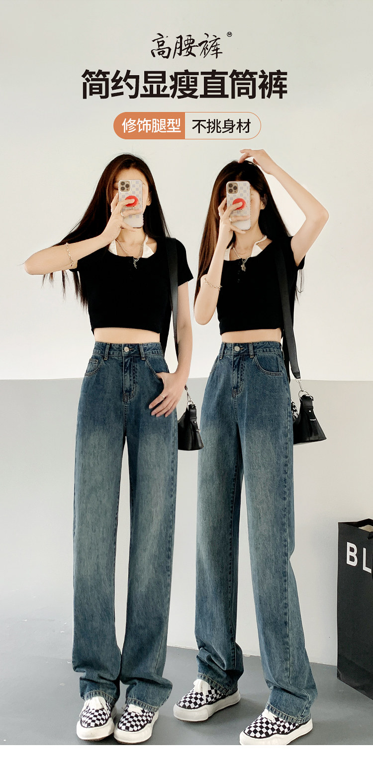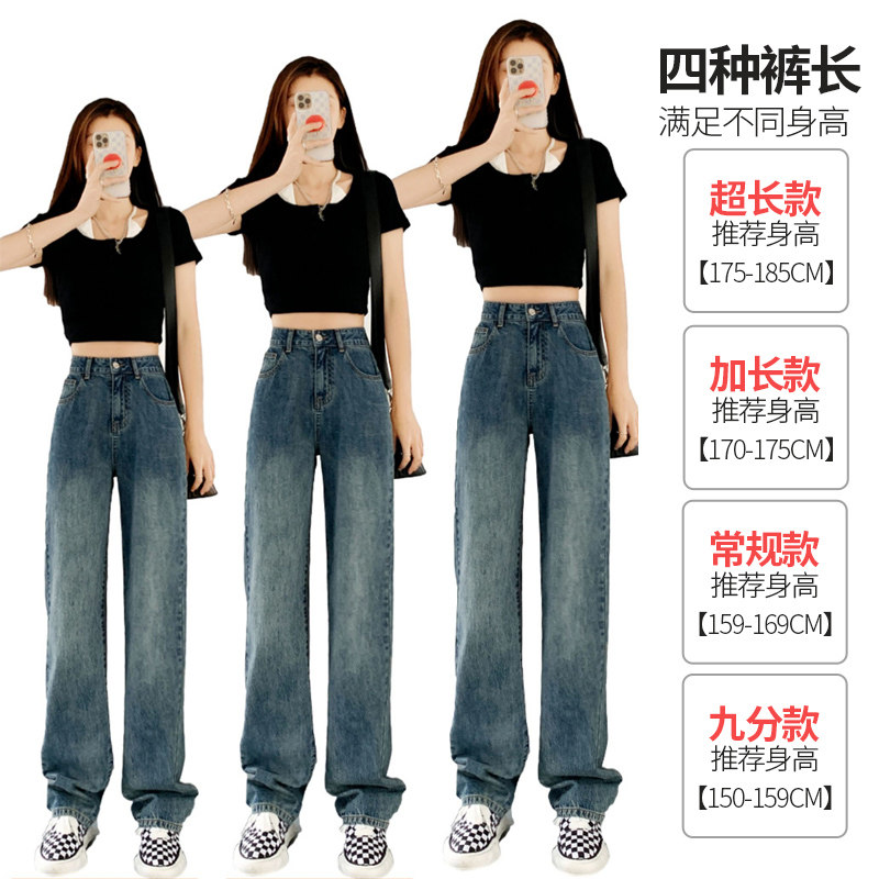 Длинные джинсы, тонкие сверхдлинные штаны, высокая талия, свободный прямой крой
