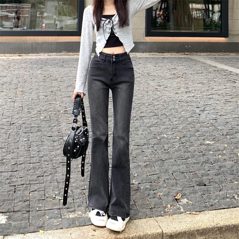 Ретро мегафон, осенние джинсы, приталенные штаны, в корейском стиле, коллекция 2022, высокая талия, свободный прямой крой