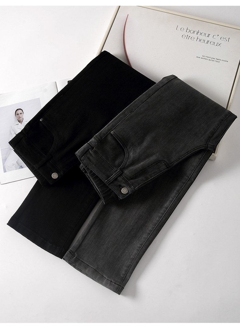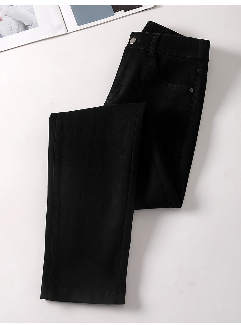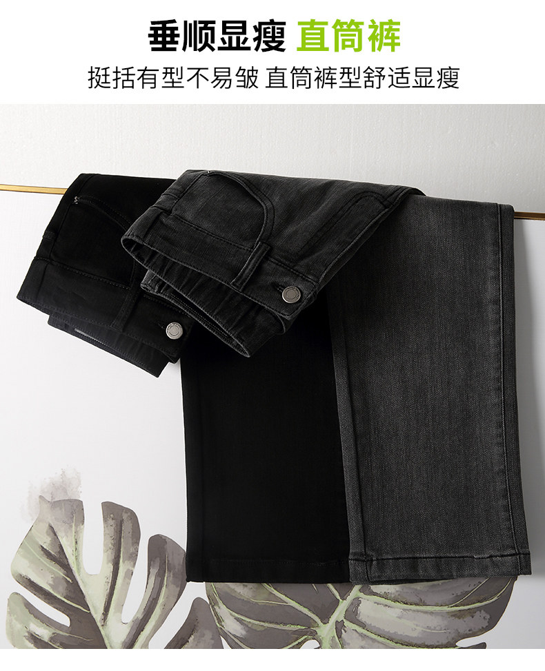 Осенние черные джинсы, эластичные штаны, свободный прямой крой, коллекция 2022, эластичная талия, по фигуре, большой размер, высокая талия