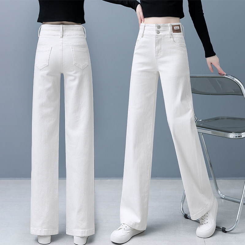 Белые джинсы, осенние штаны для отдыха, 2024 года, высокая талия, свободный прямой крой