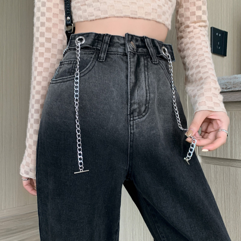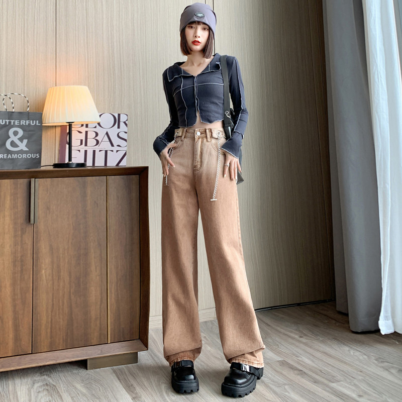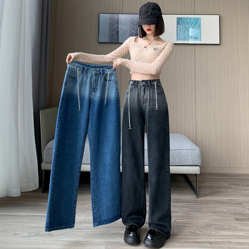 Осенние джинсы, штаны, дизайнерская цепь, градиент, свободный крой, тренд сезона