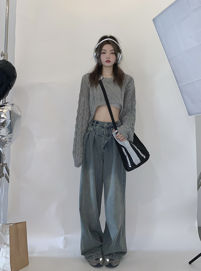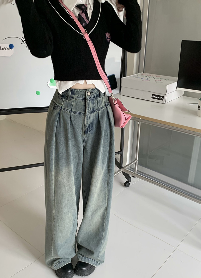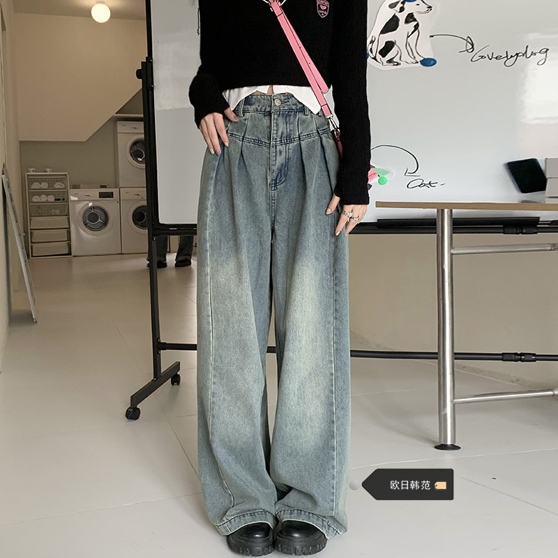 Ретро джинсы, осенние дизайнерские штаны, большой размер, свободный крой, высокая талия, тренд сезона