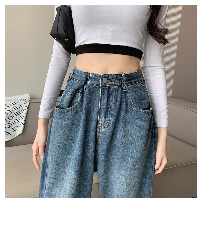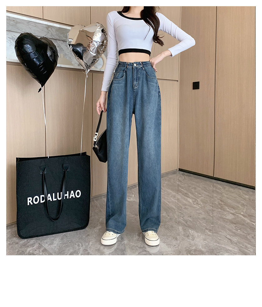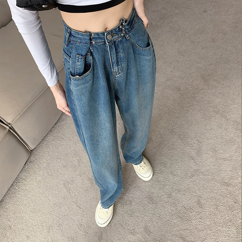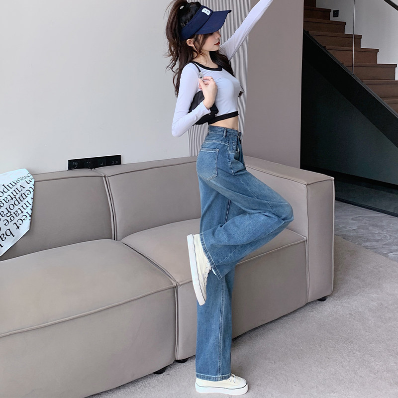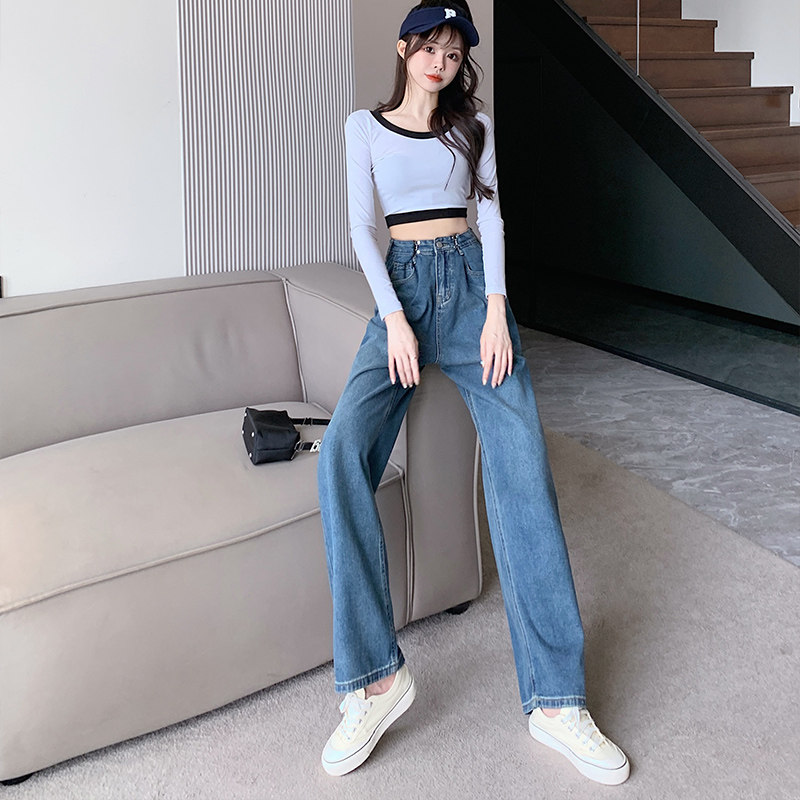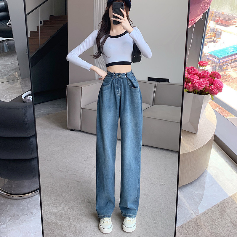 Джинсы, штаны, свободный крой, 2023, в корейском стиле, высокая талия
