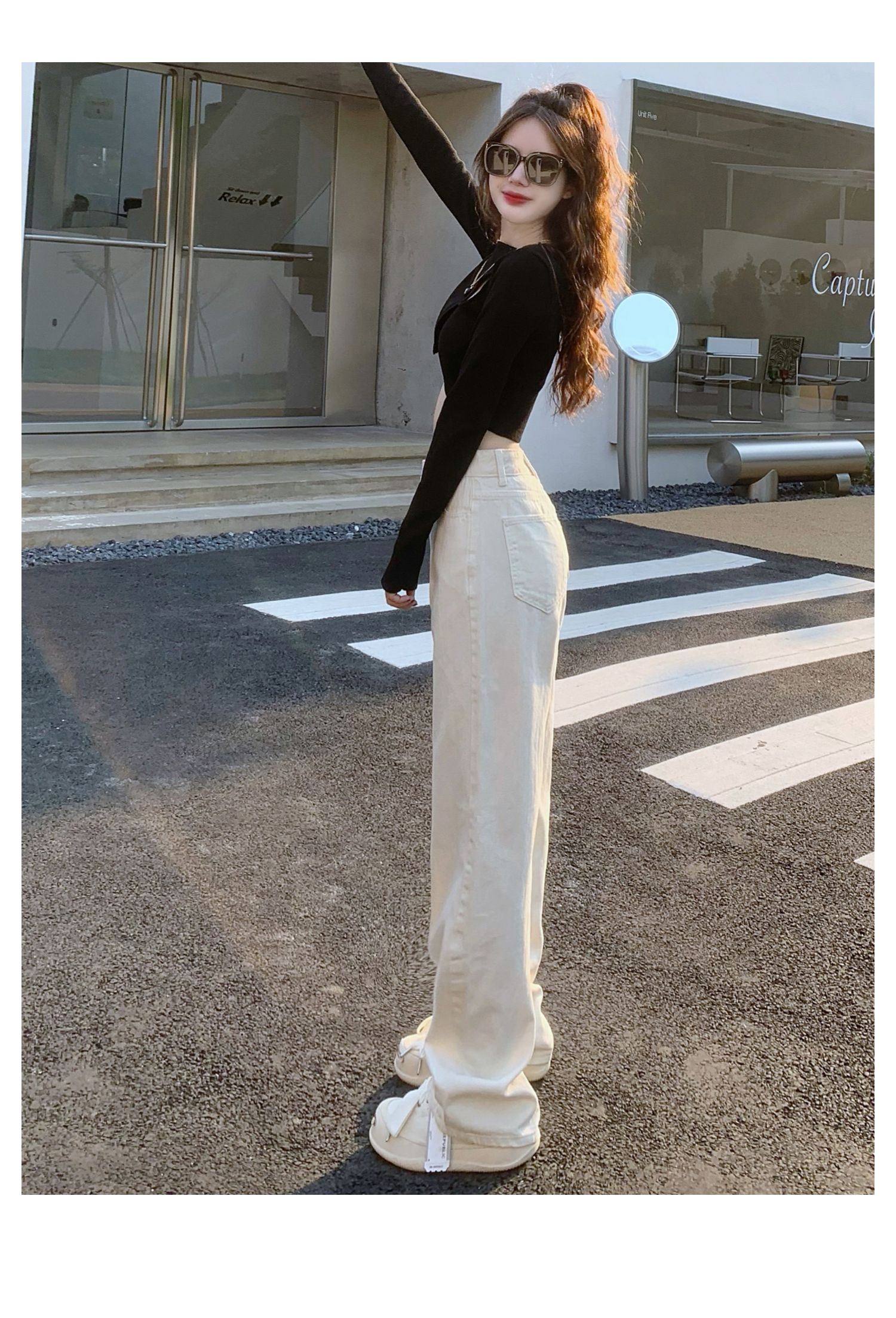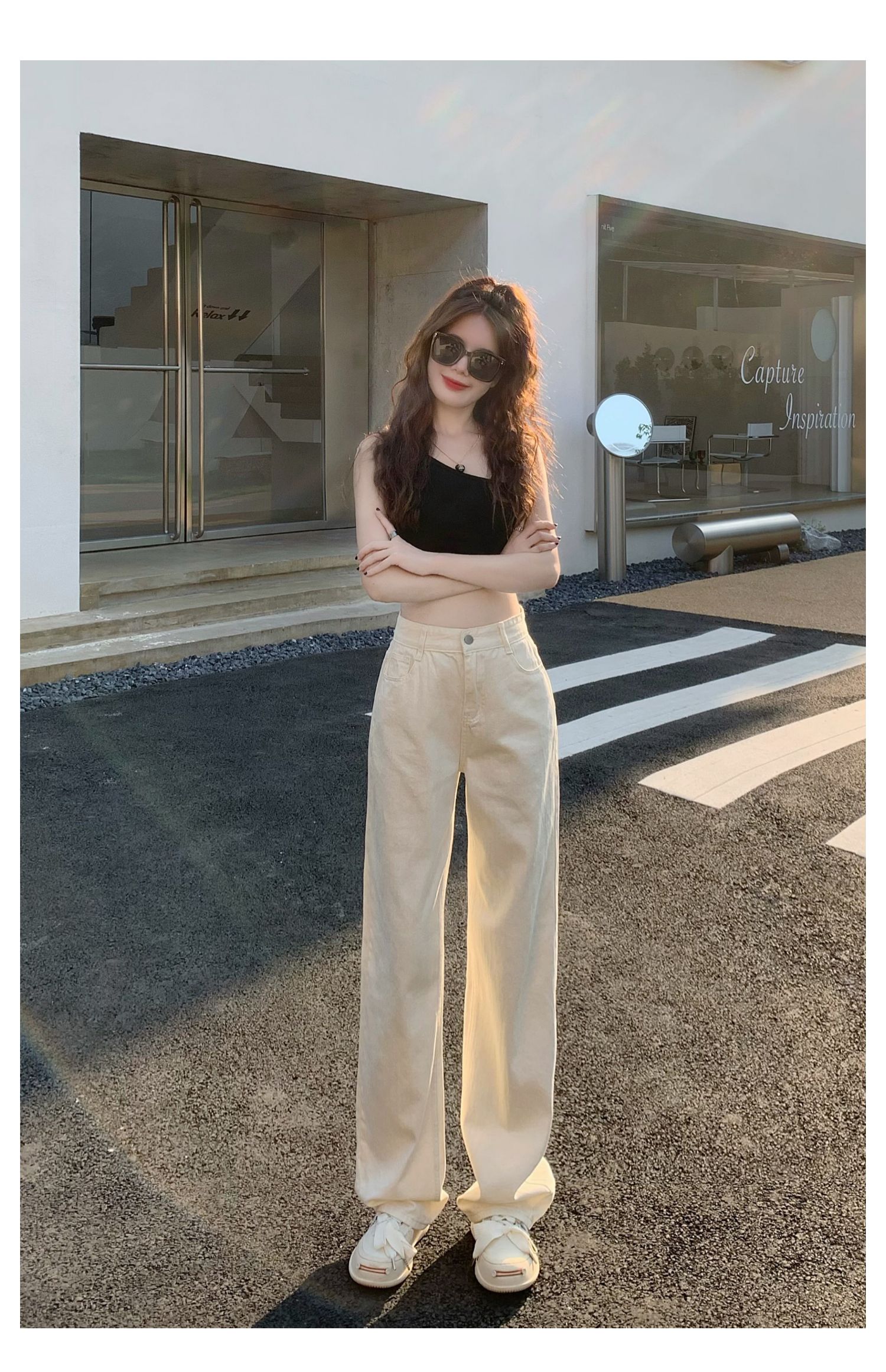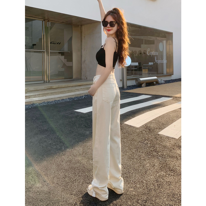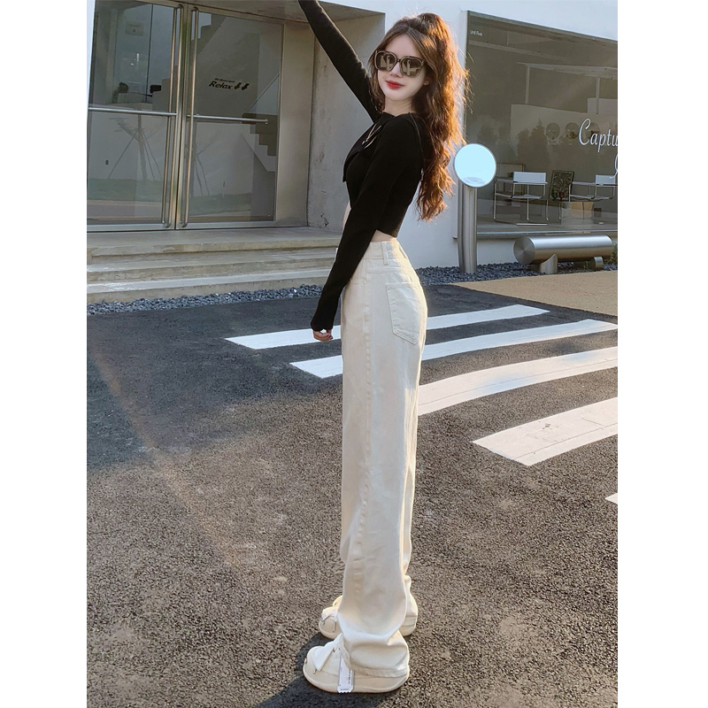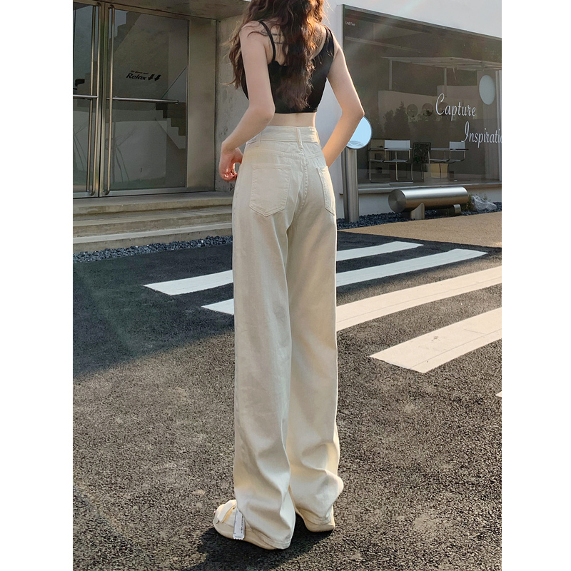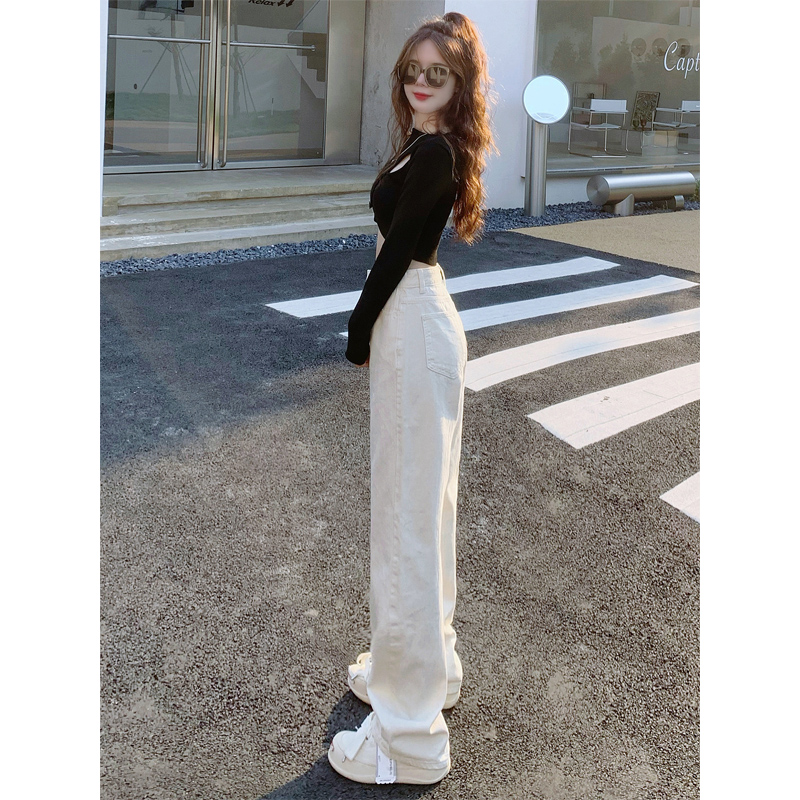 Белые джинсы, весенние штаны, высокая талия, по фигуре, свободный прямой крой