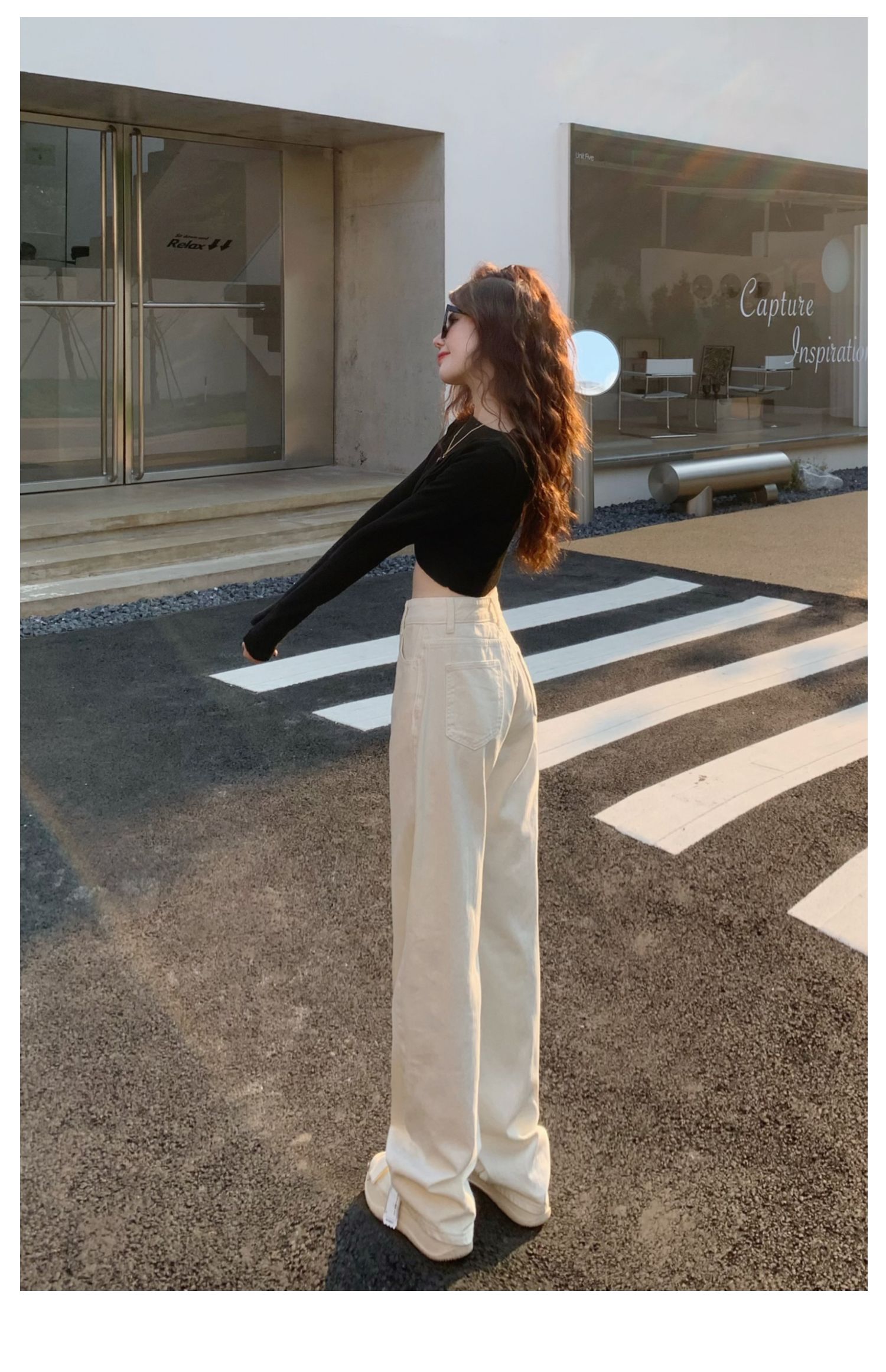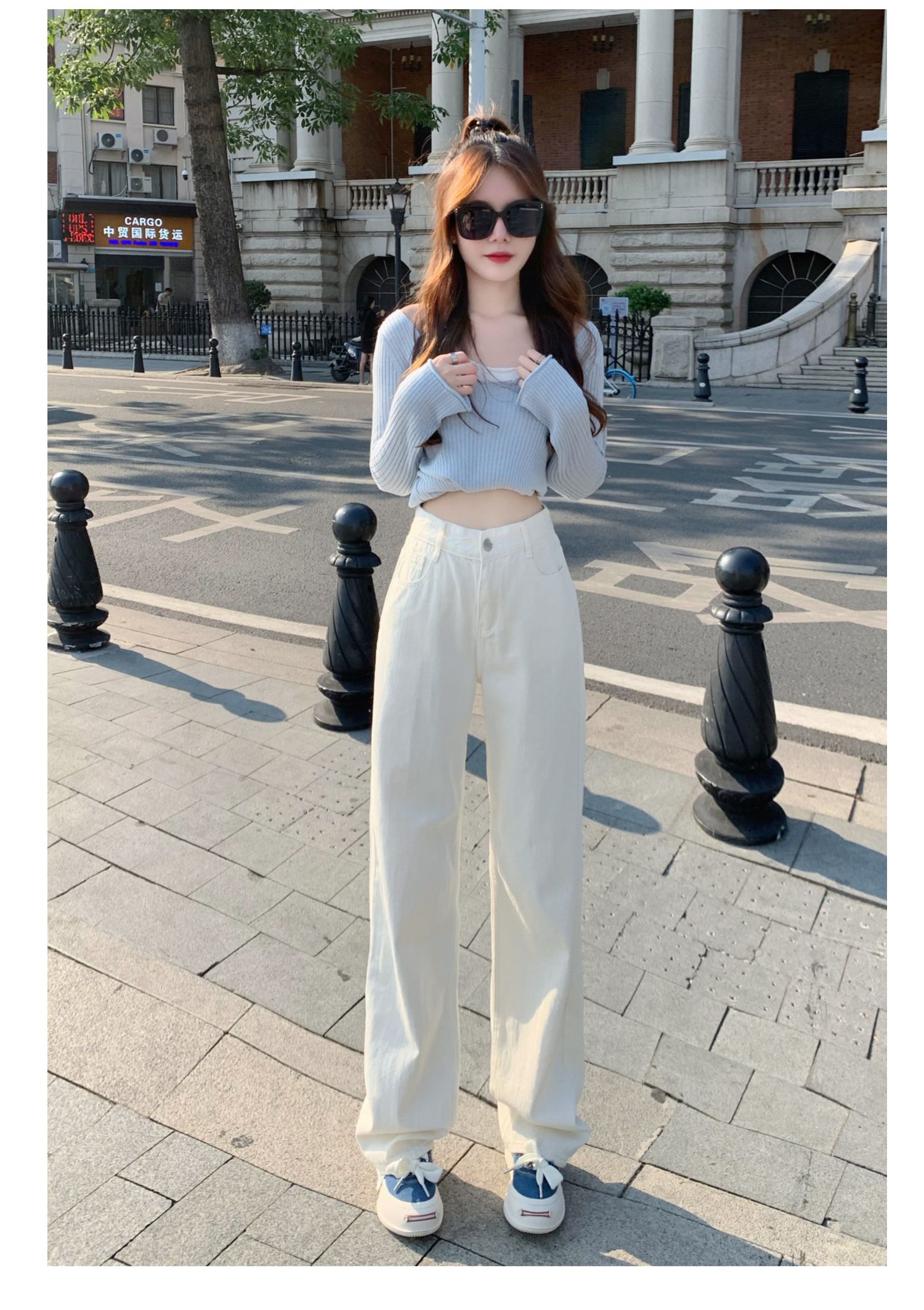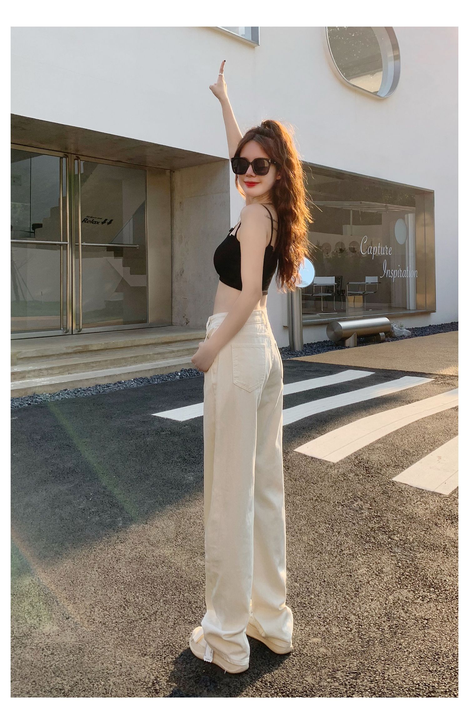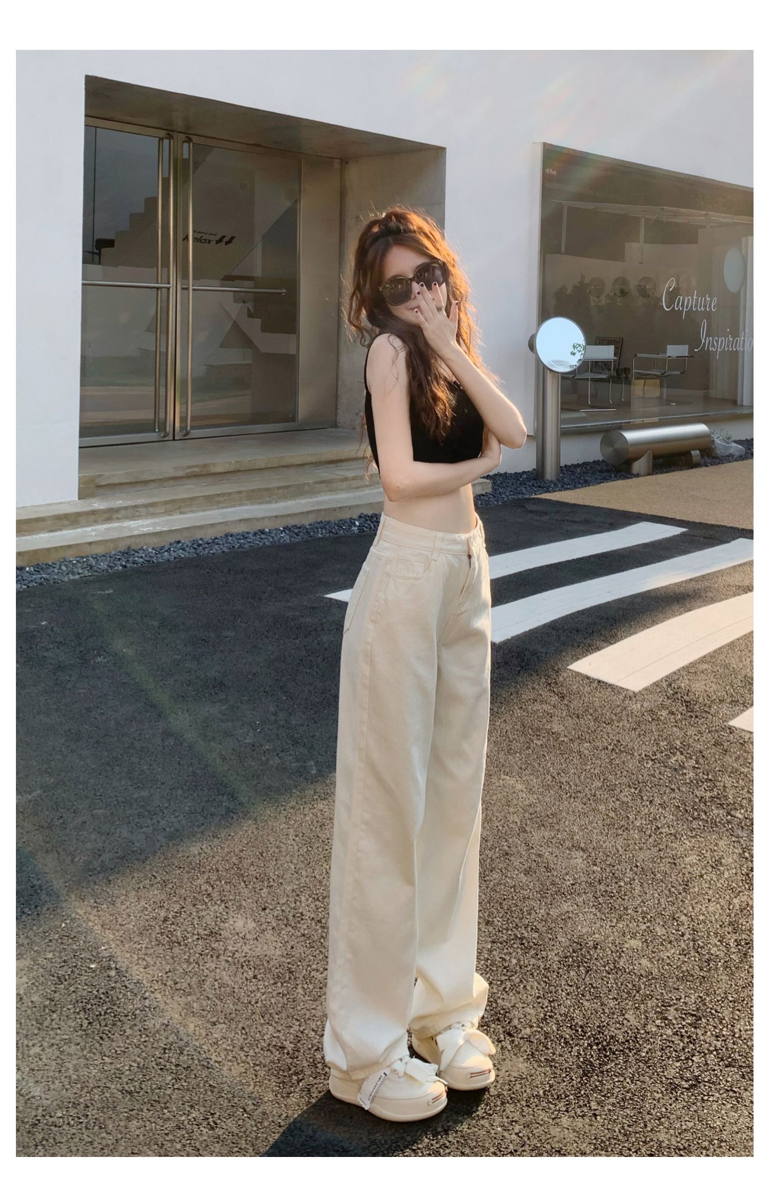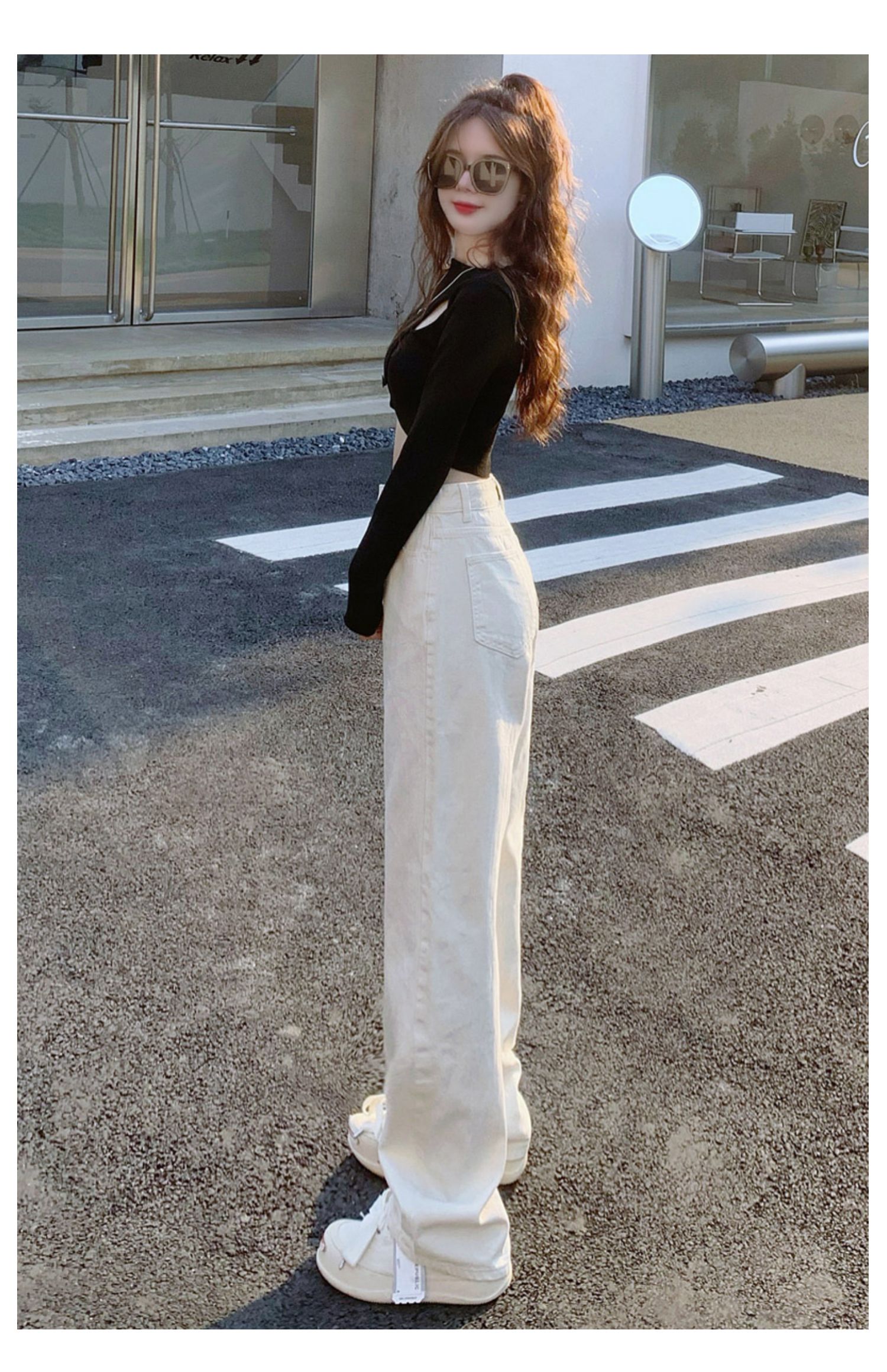 Белые джинсы, весенние штаны, высокая талия, по фигуре, свободный прямой крой