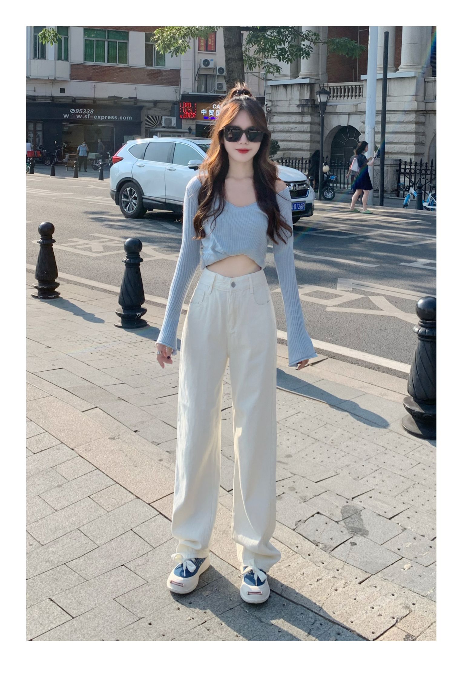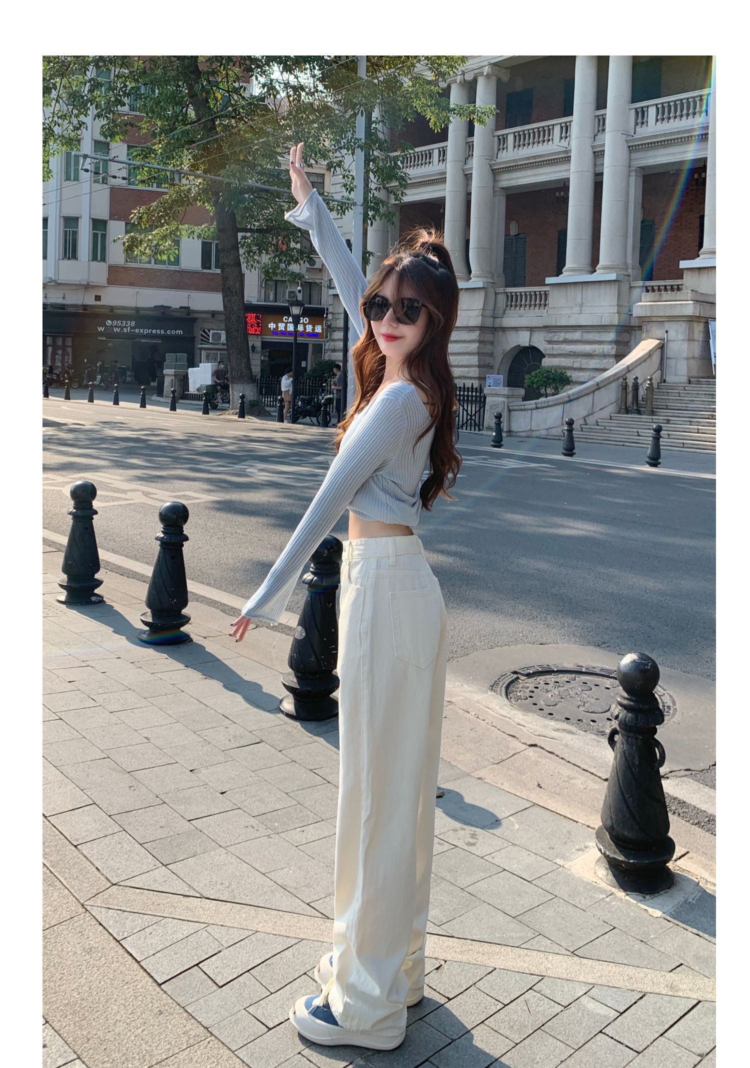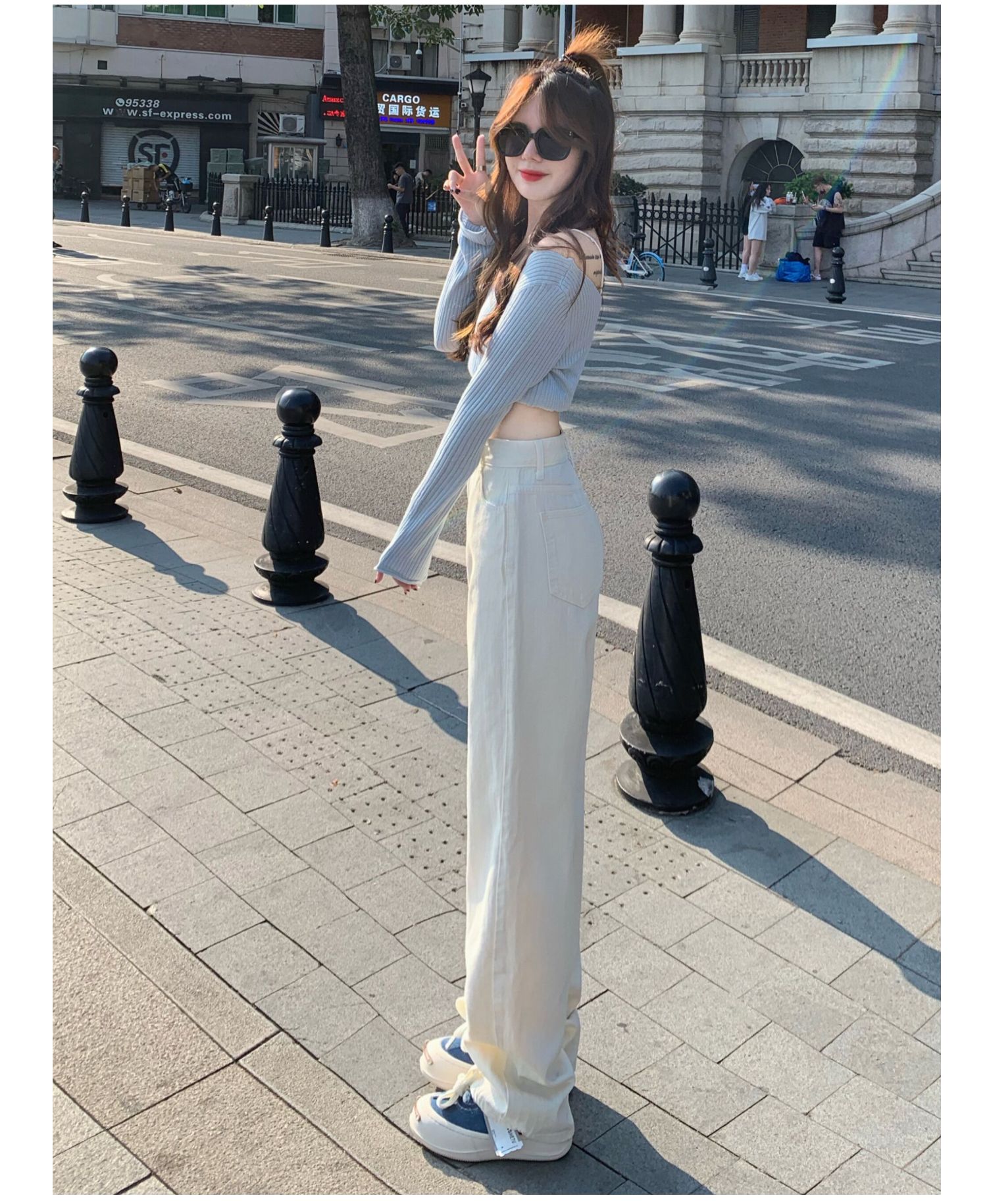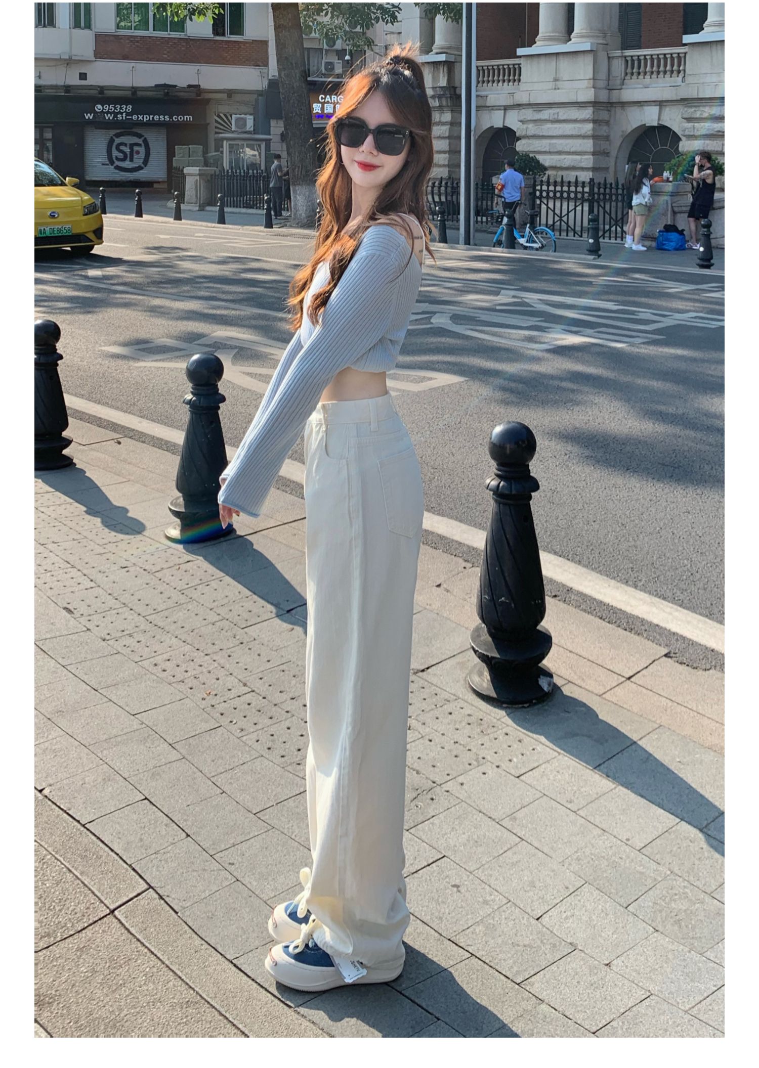 Белые джинсы, весенние штаны, высокая талия, по фигуре, свободный прямой крой
