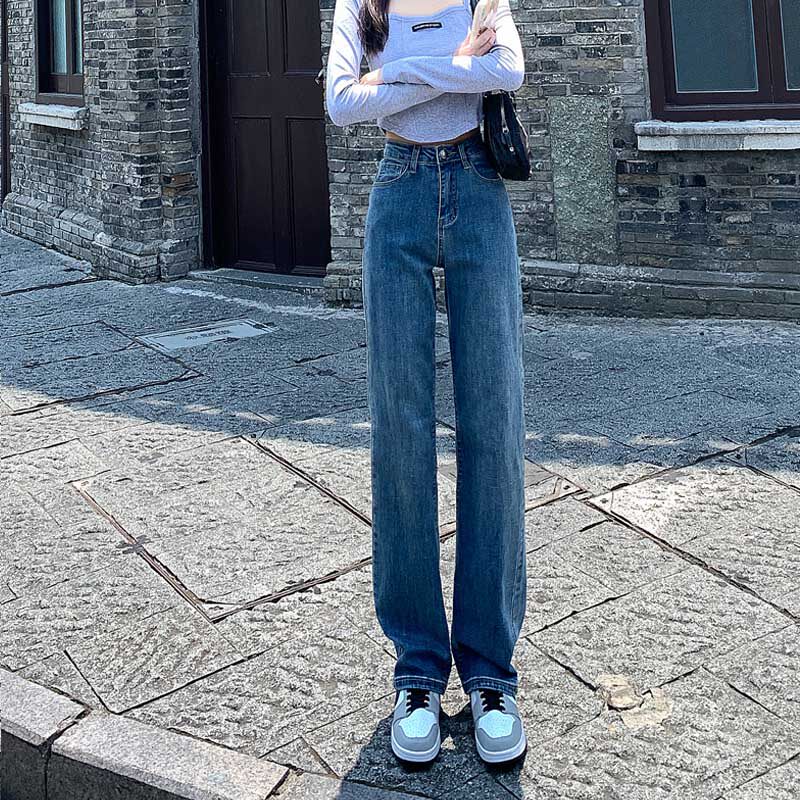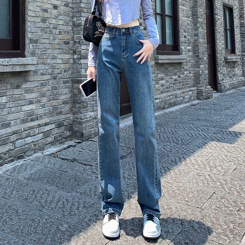 Весенние ретро прямые свободные джинсы, приталенные штаны, высокая талия