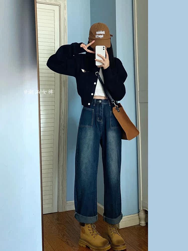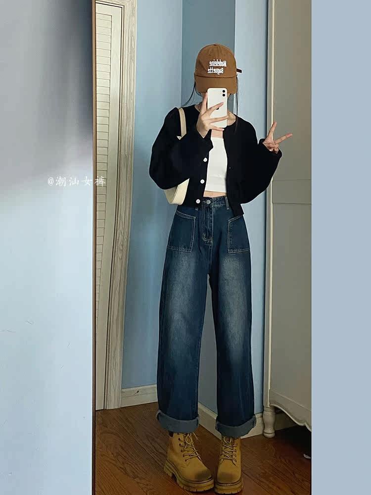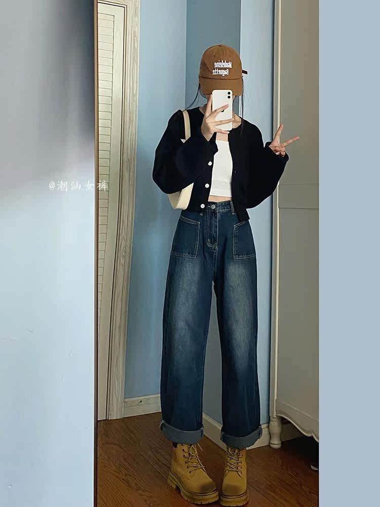 Ретро осенние джинсы, штаны, высокая талия, подходят для подростков, свободный прямой крой