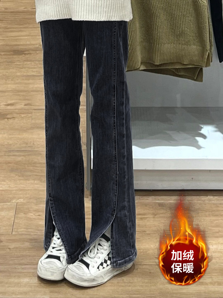 Цветные джинсовые джинсы, утепленные сексуальные штаны, большой размер, высокая талия, свободный прямой крой
