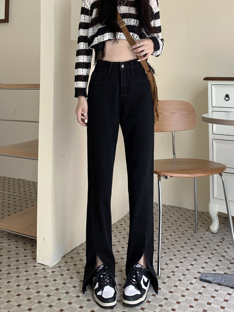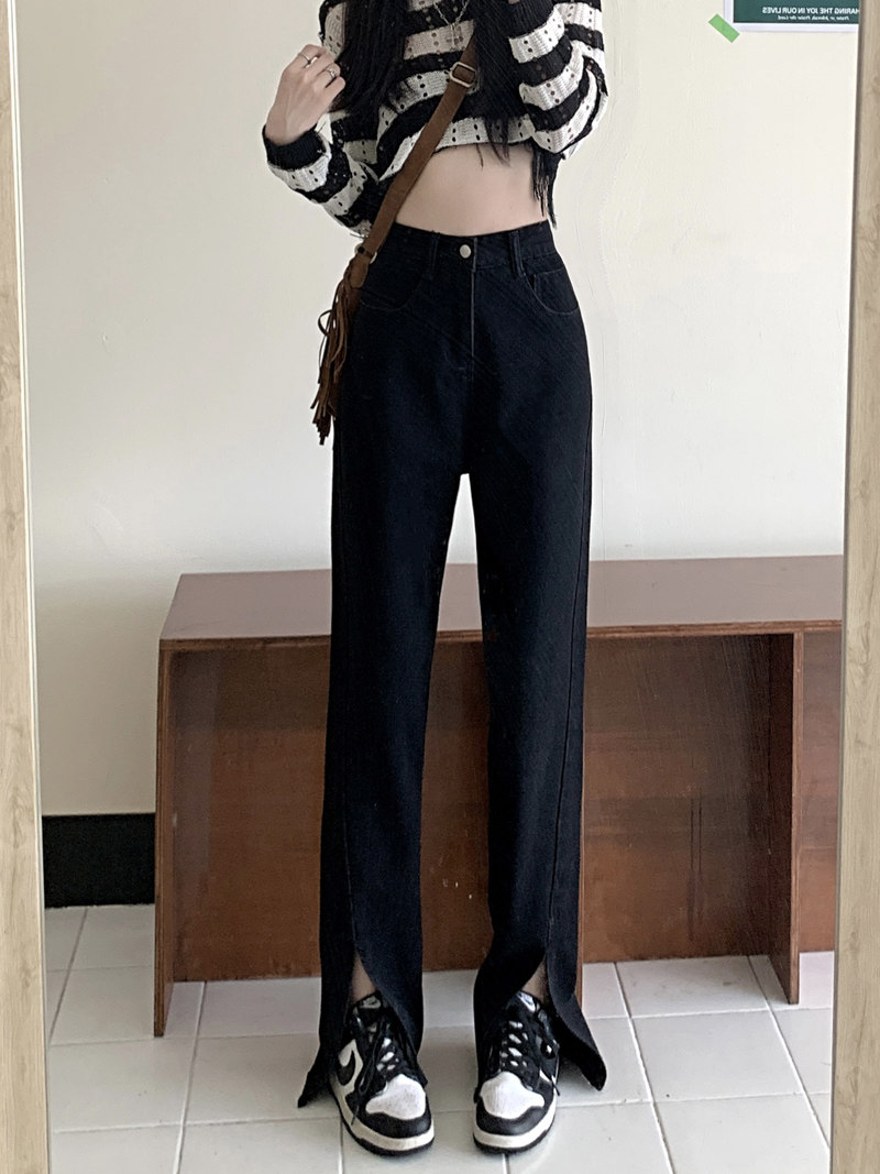 Черные джинсовые осенние джинсы, дизайнерские штаны, коллекция 2023, высокая талия, большой размер, тренд сезона, свободный крой