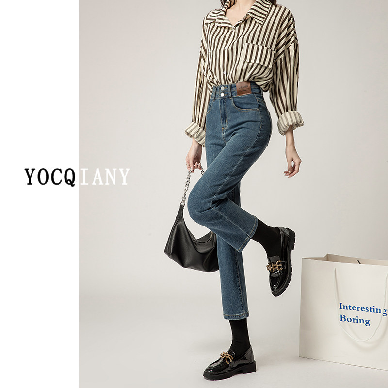 Осенние прямые свободные джинсы, штаны, высокая талия, 2022, по фигуре, оверсайз