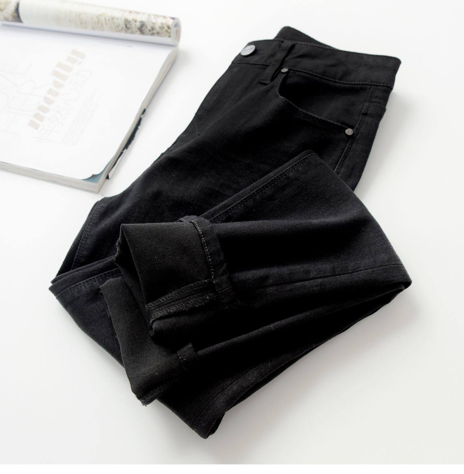 Универсальные штаны, джинсовый комфортный эластичный карандаш, по фигуре, облегающий крой
