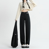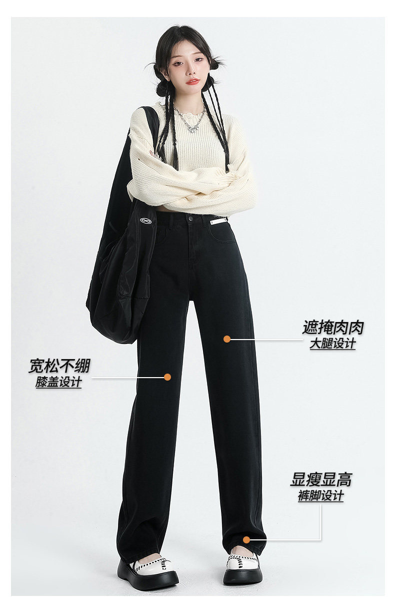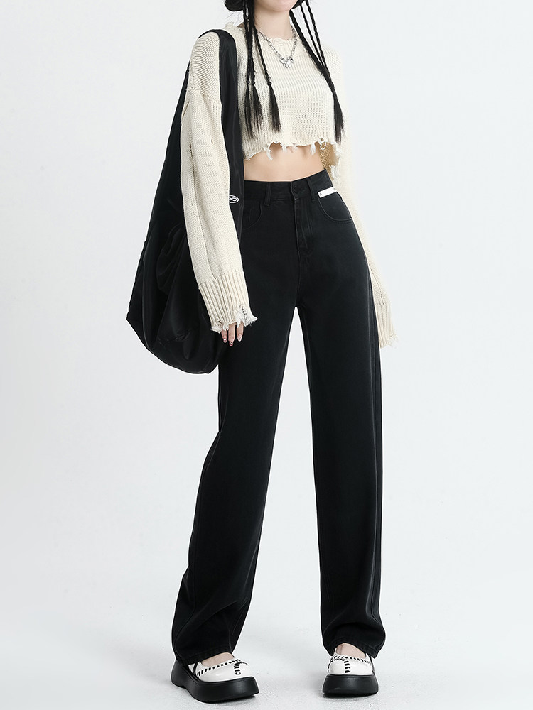 Черные штаны, осенние приталенные прямые свободные джинсы, коллекция 2022, высокая талия, свободный крой