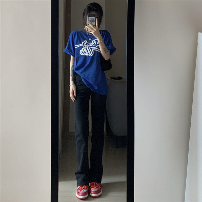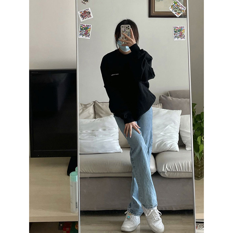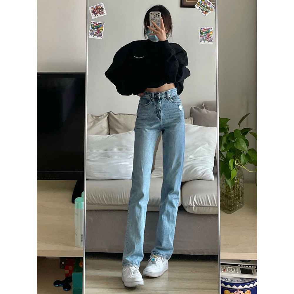Синие прямые свободные джинсы, демисезонные штаны, 2024 года, высокая талия, большой размер, по фигуре, свободный крой