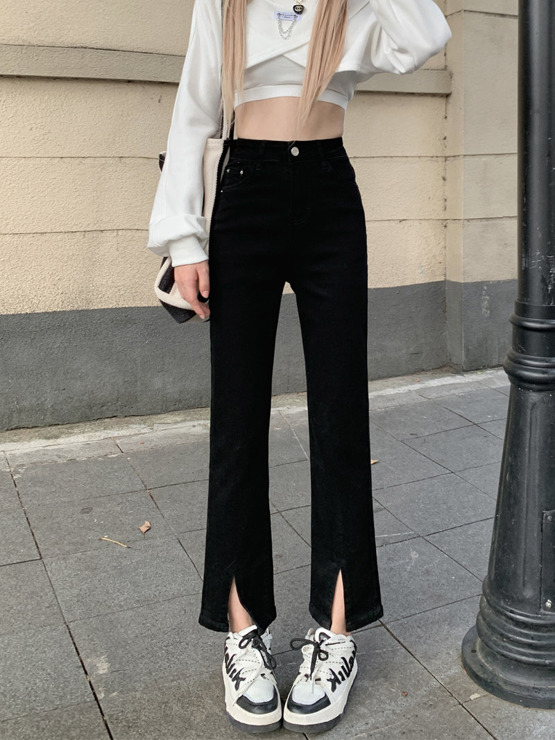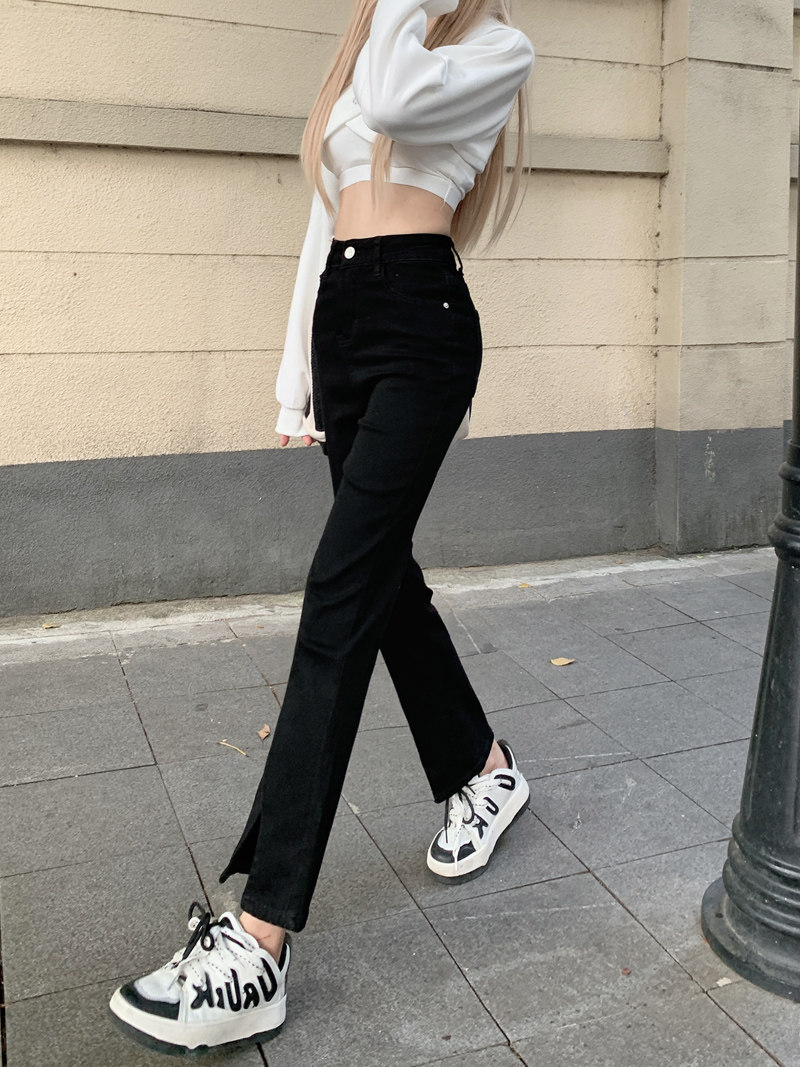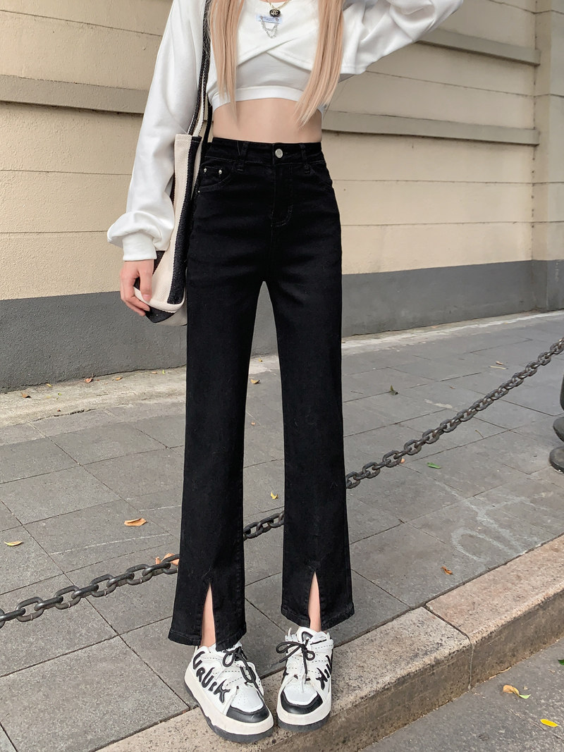 Черные эластичные джинсовые джинсы, приталенные штаны, большой размер, подходит для полных девушек, высокая талия, по фигуре, подходят для подростков, свободный прямой крой