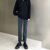 Штаны, демисезонные прямые свободные джинсы, леггинсы, высокая талия, коллекция 2023, подходит для подростков, большой размер