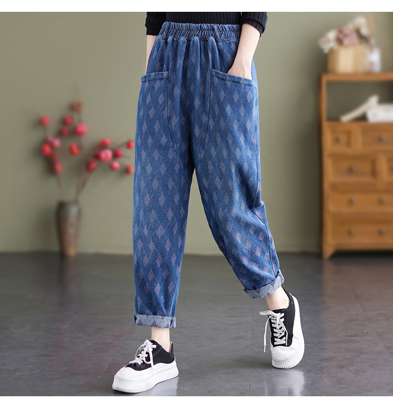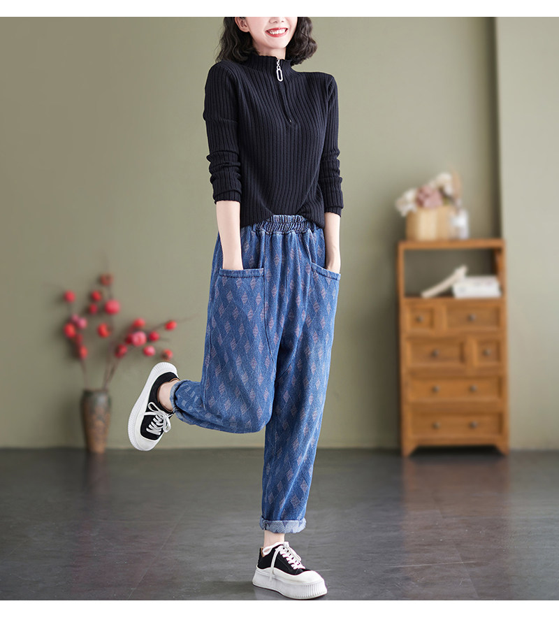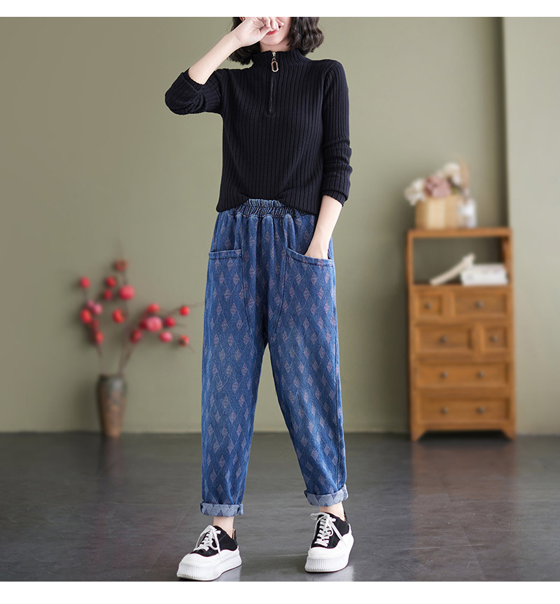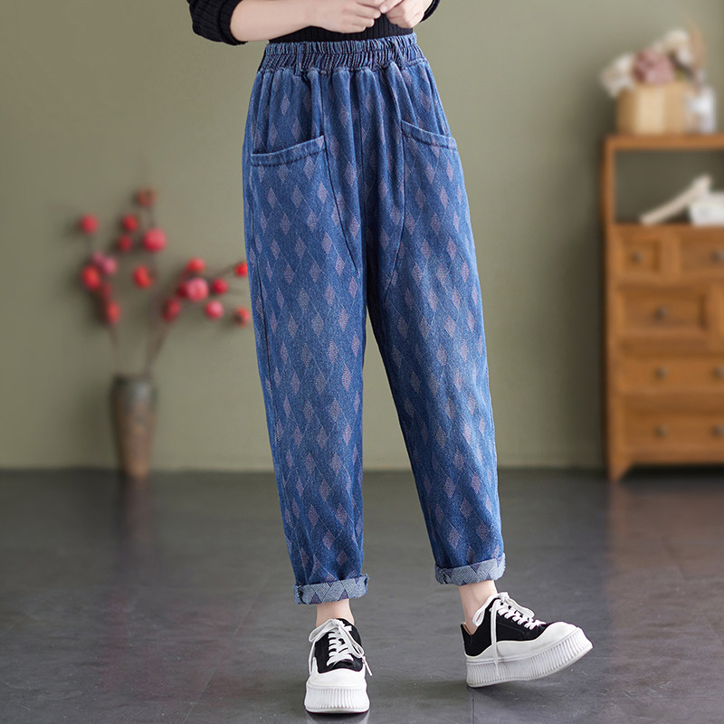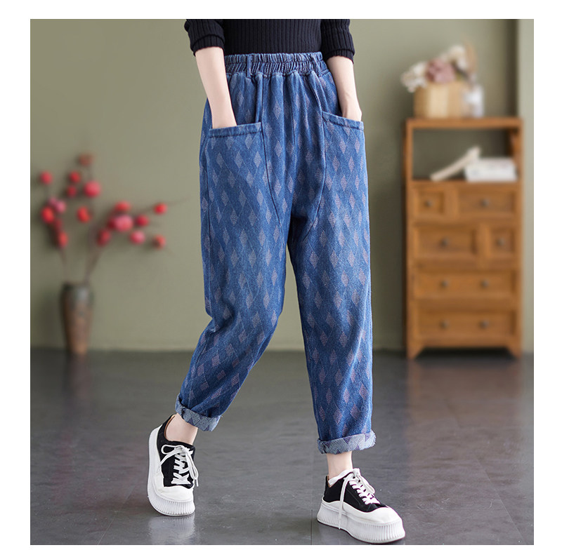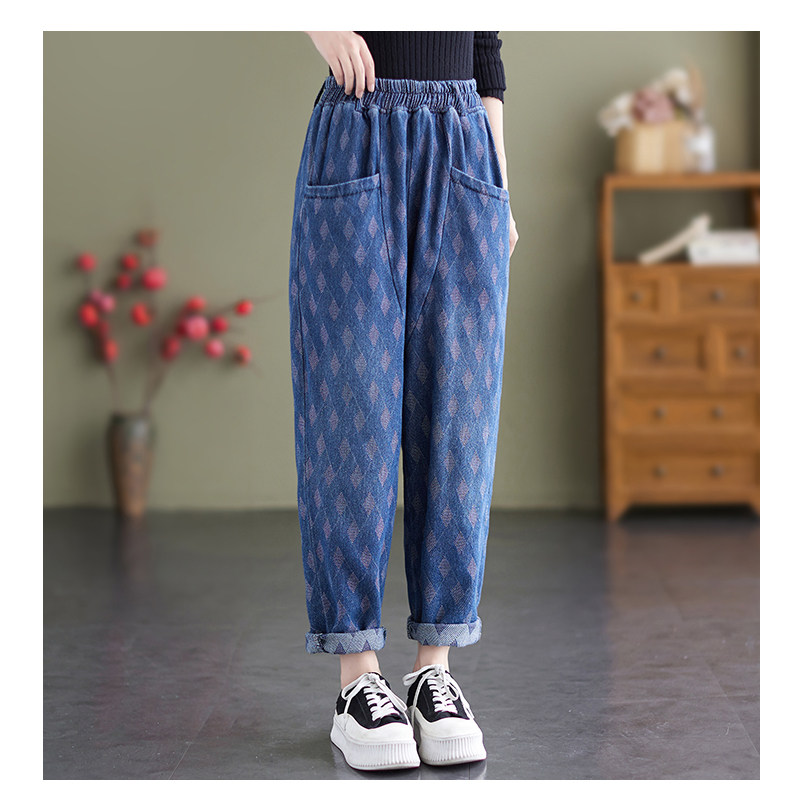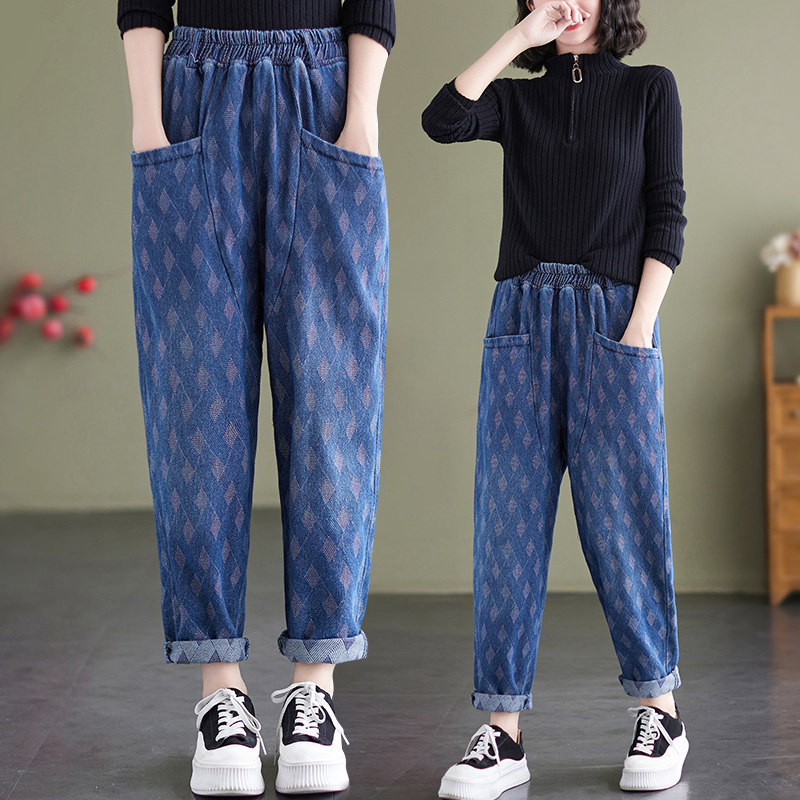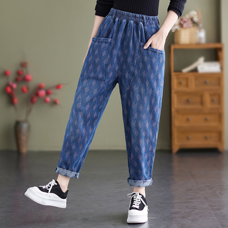 Осенний корсет, джинсы, штаны, в корейском стиле, эластичная талия, по фигуре, свободный крой