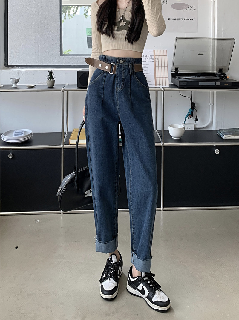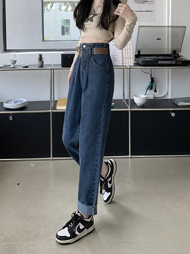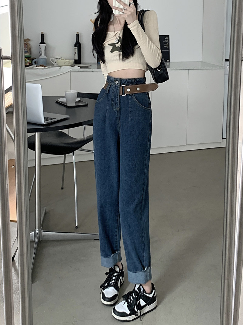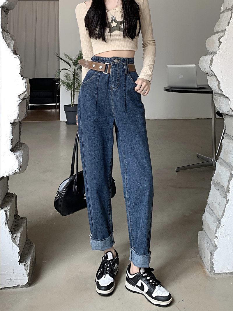 Штаны, осенние приталенные дизайнерские джинсы, высокая талия, большой размер, свободный крой, тренд сезона