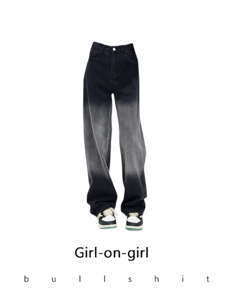 Tide, черные прямые свободные джинсы, штаны, приталенные леггинсы, градиент, высокая талия