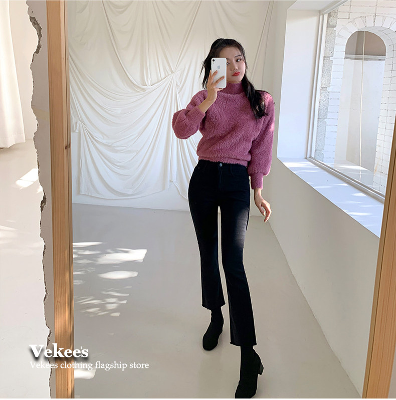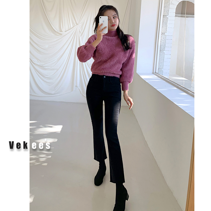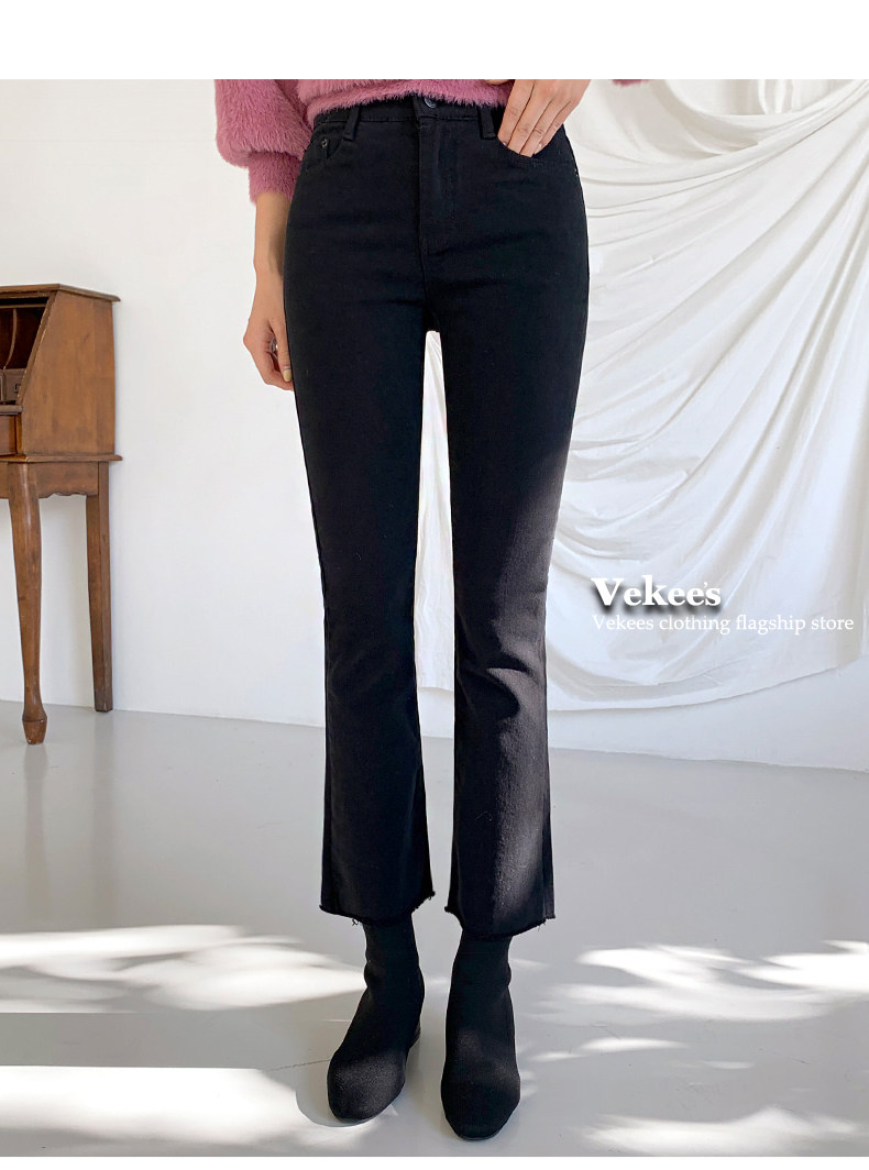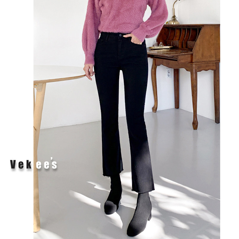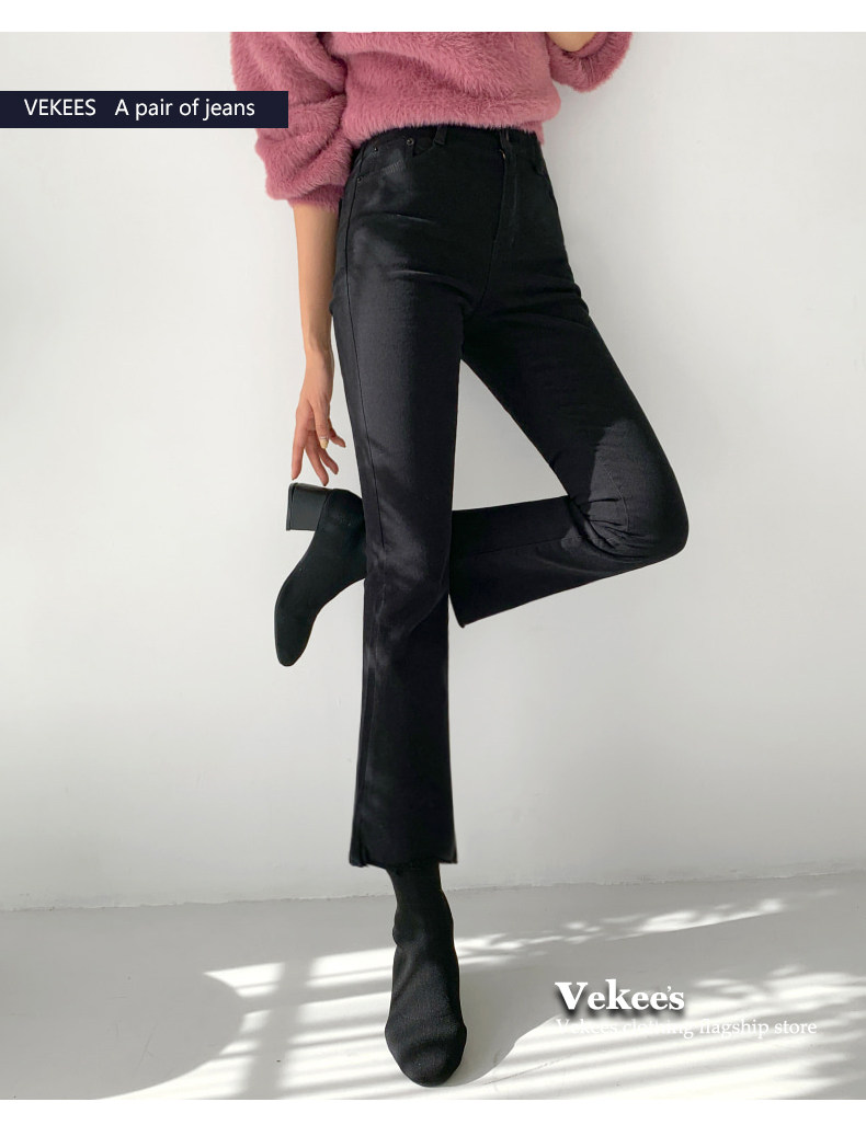 Черные высокие штаны-клёш, осенние штаны, зимние флисовые джинсы с начесом, высокая талия, 2023 года, по фигуре, подходит для подростков