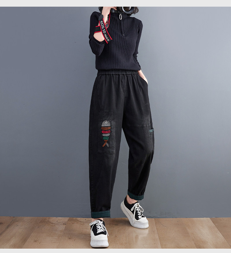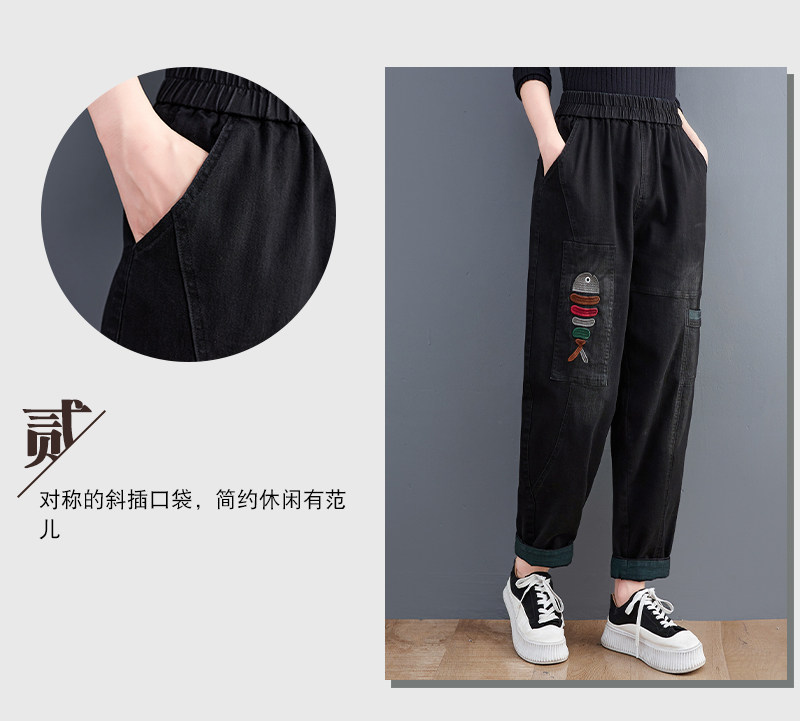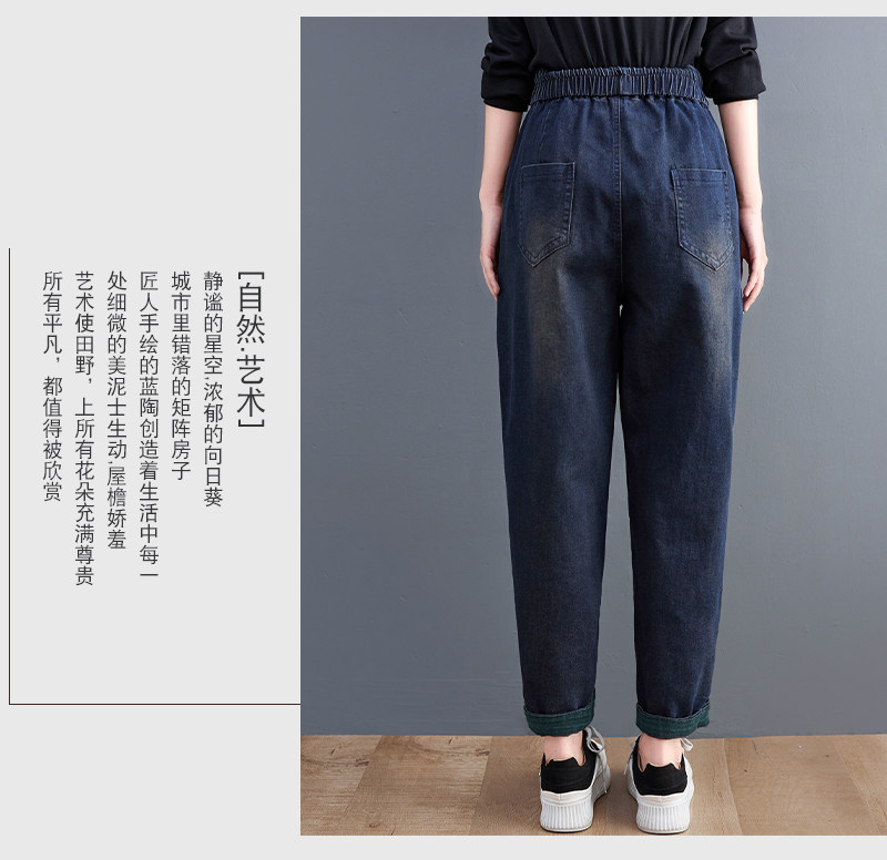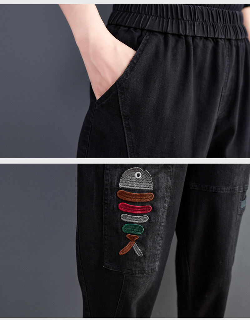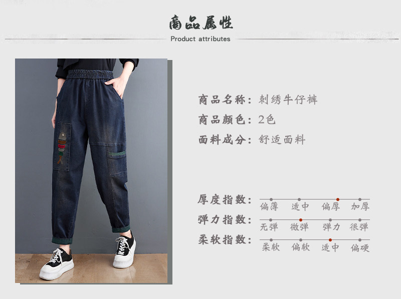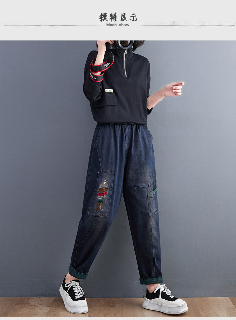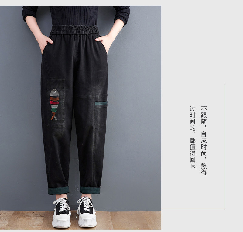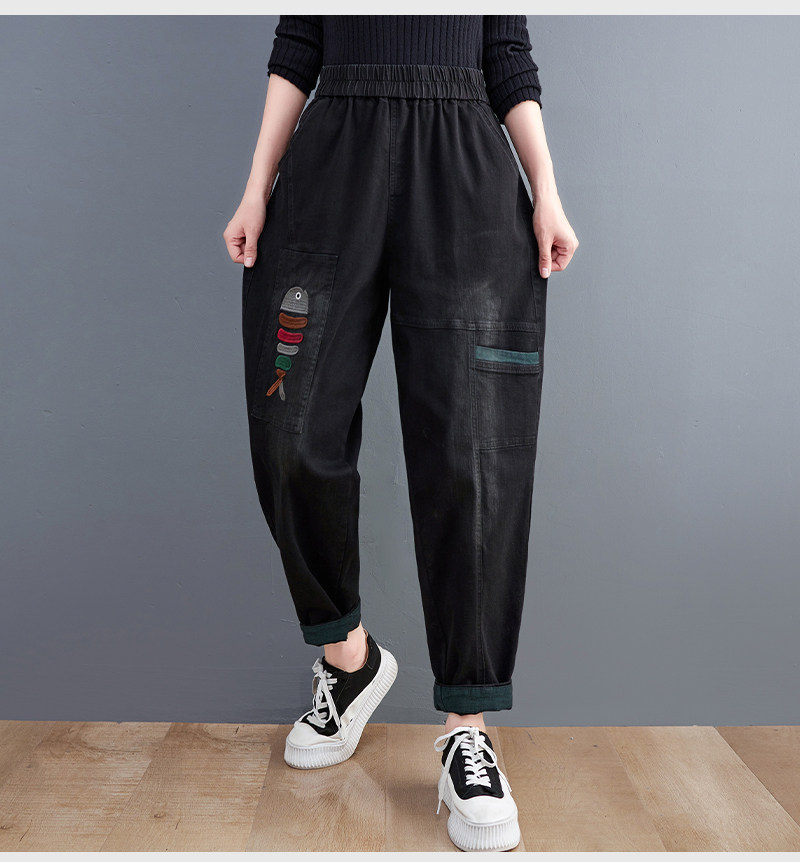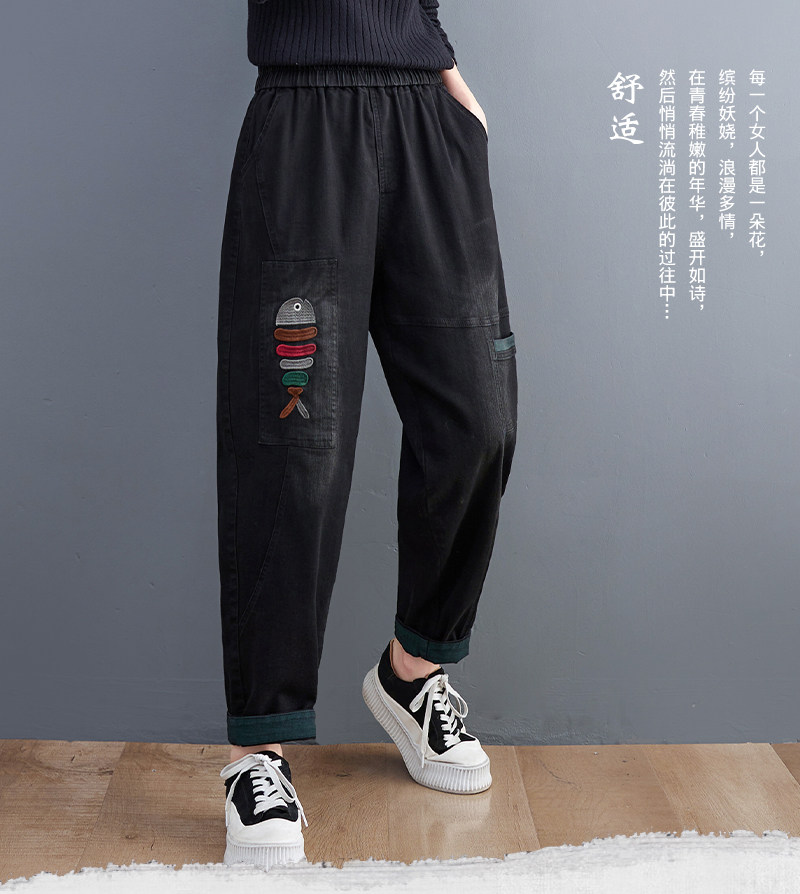 Демисезонные утепленные джинсы-шаровары, большой размер, с вышивкой