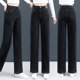 Джинсовые весенние осенние приталенные штаны для отдыха, 2025 года, высокая талия, оверсайз, свободный прямой крой, подходит для подростков