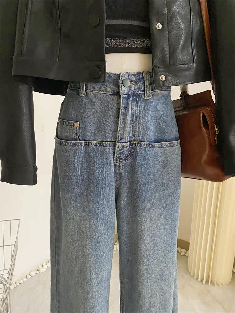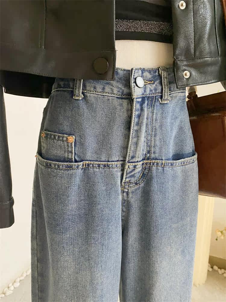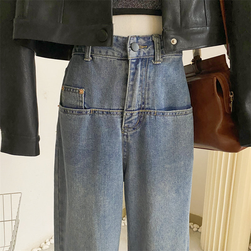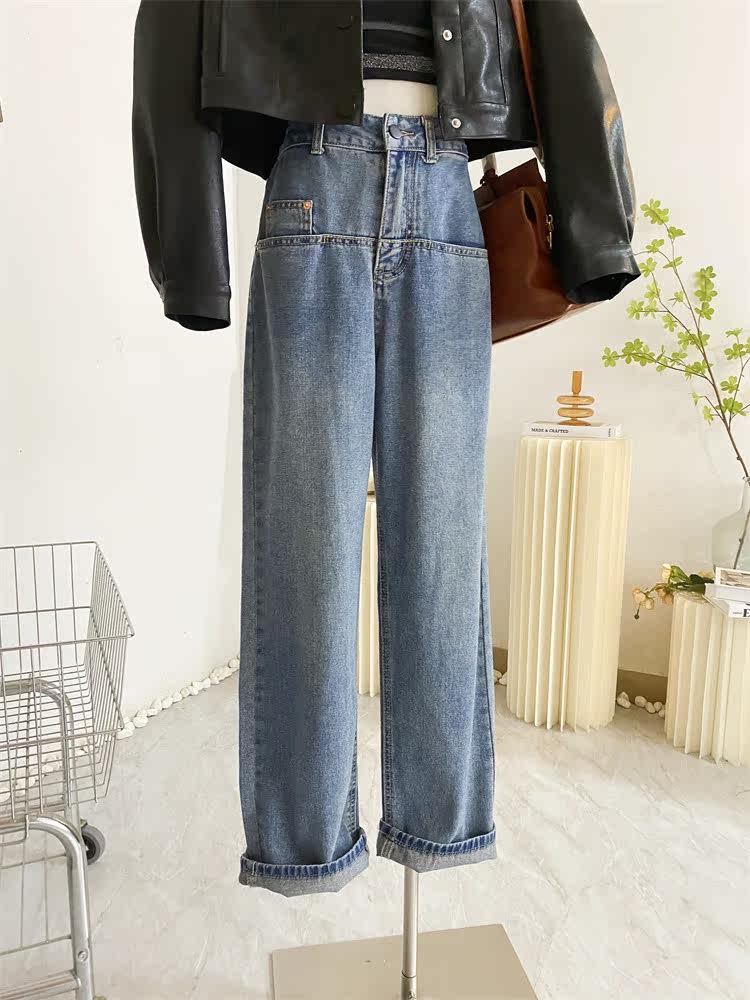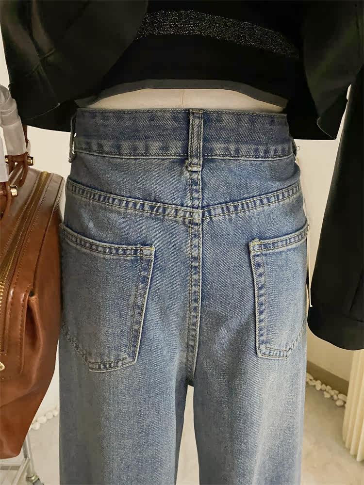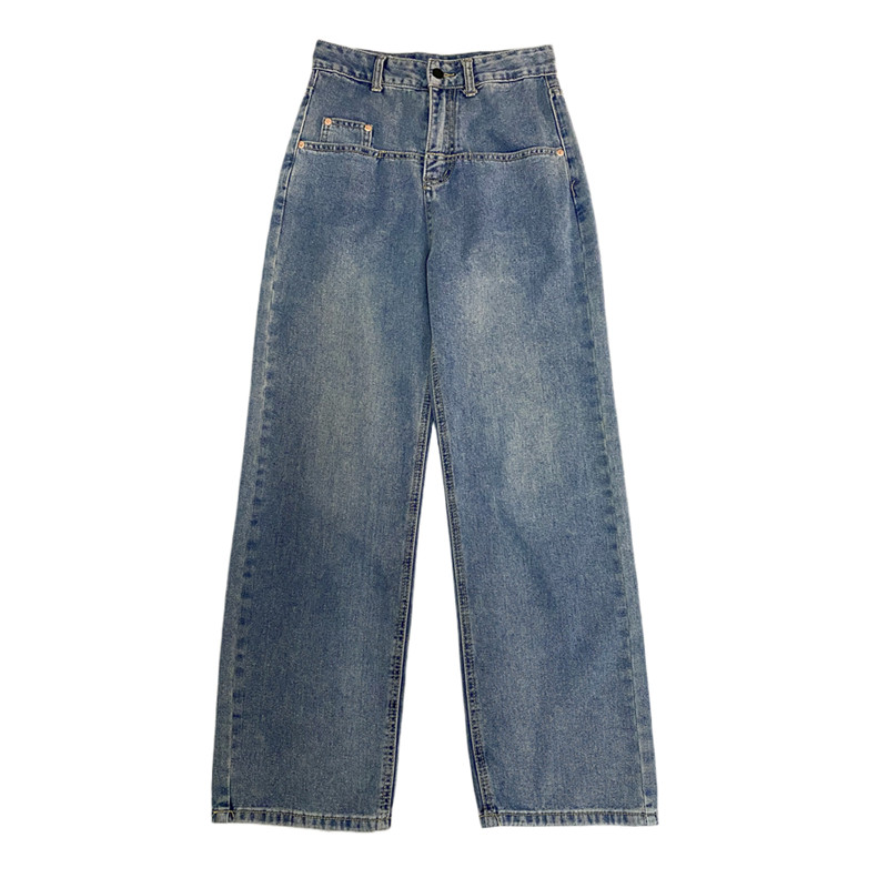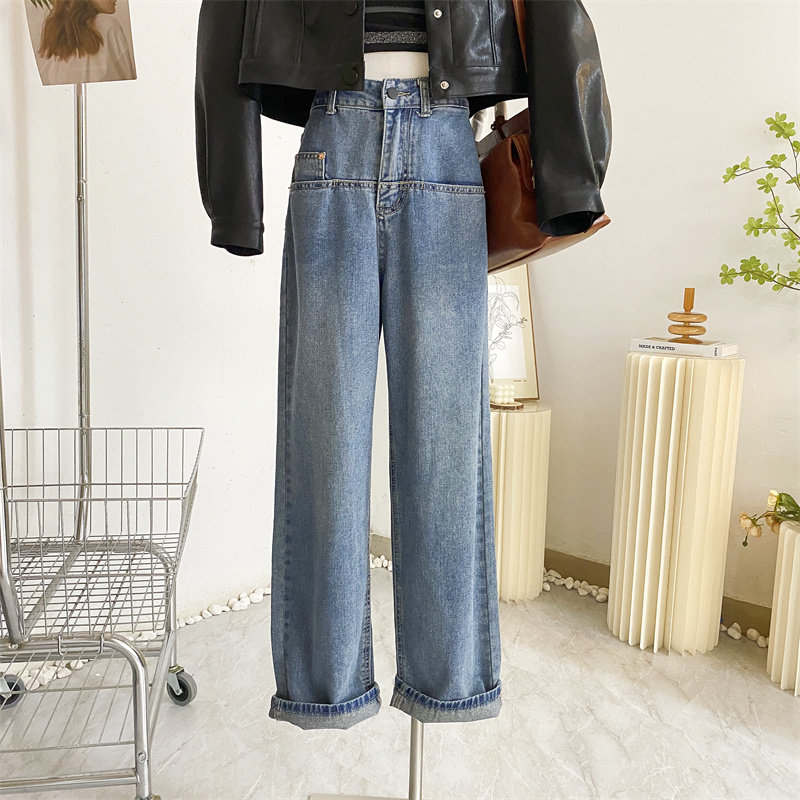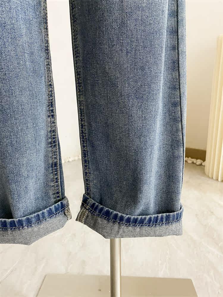 Ретро джинсы, дизайнерские штаны, в корейском стиле, оверсайз, высокая талия, свободный прямой крой, стройный силуэт