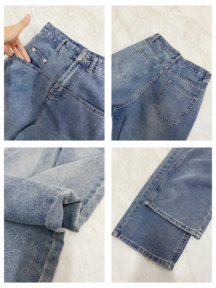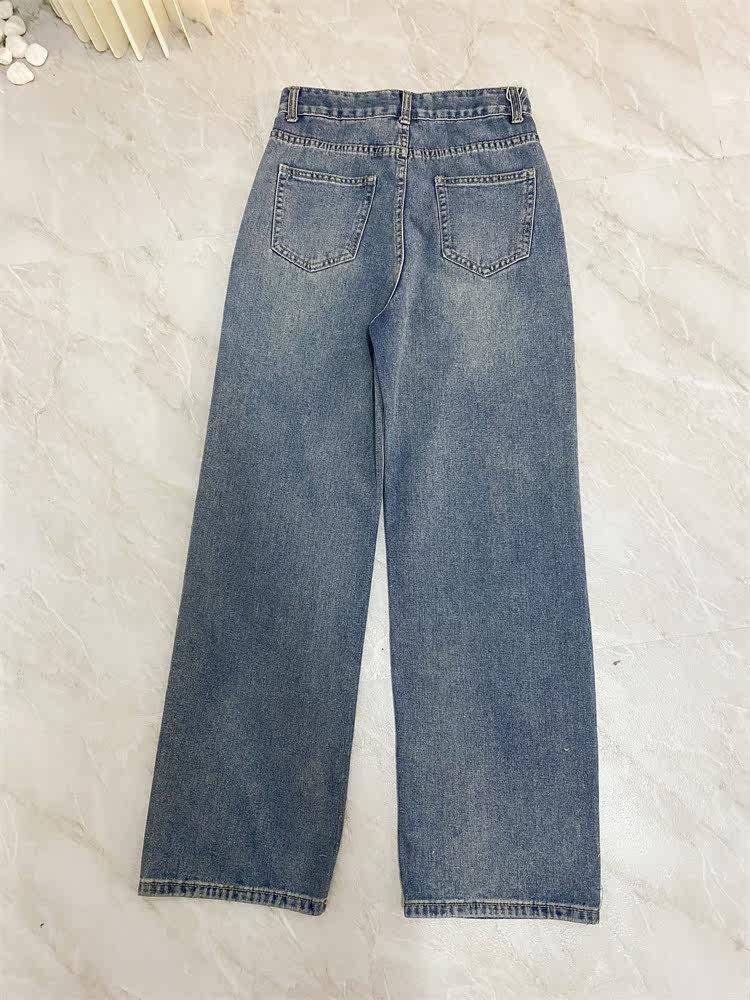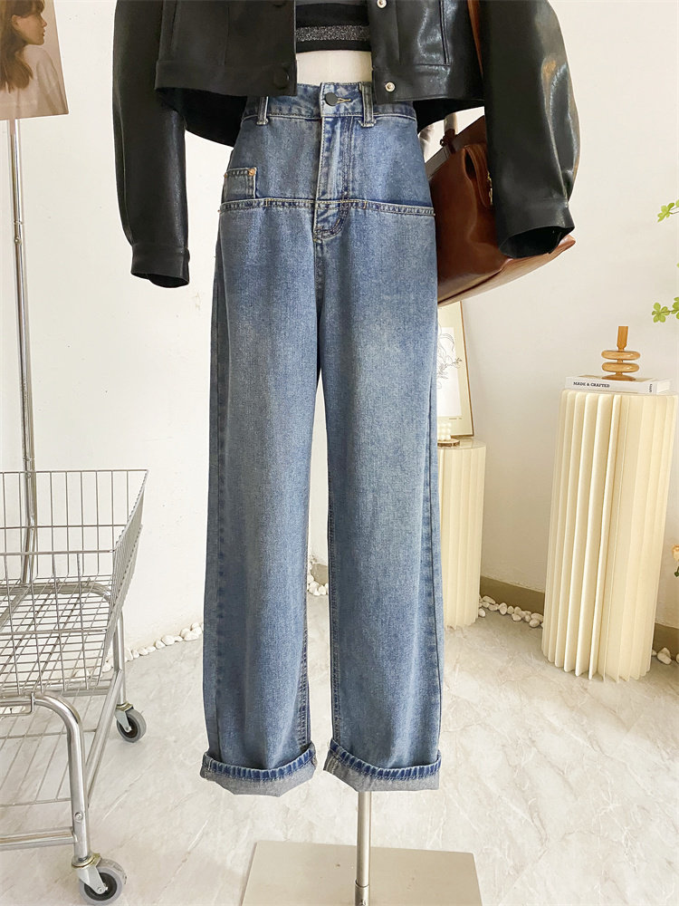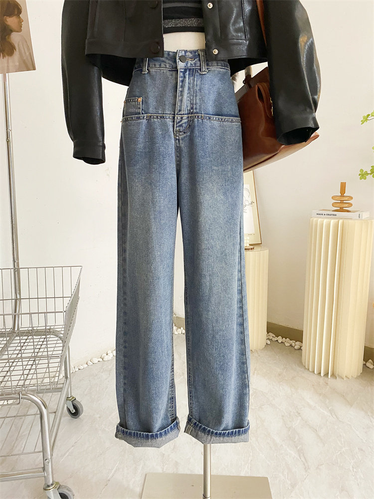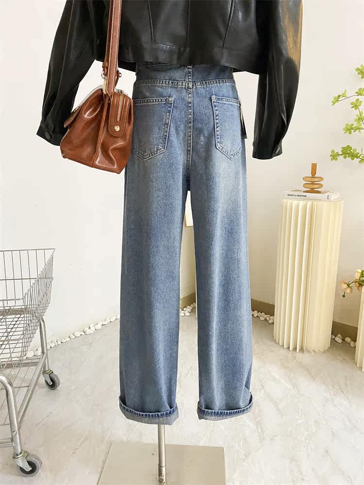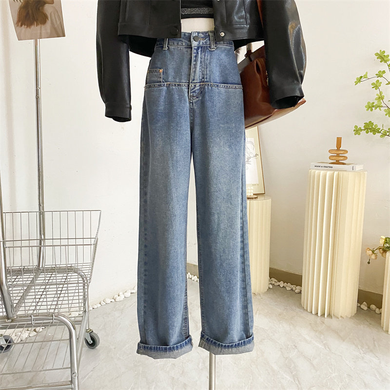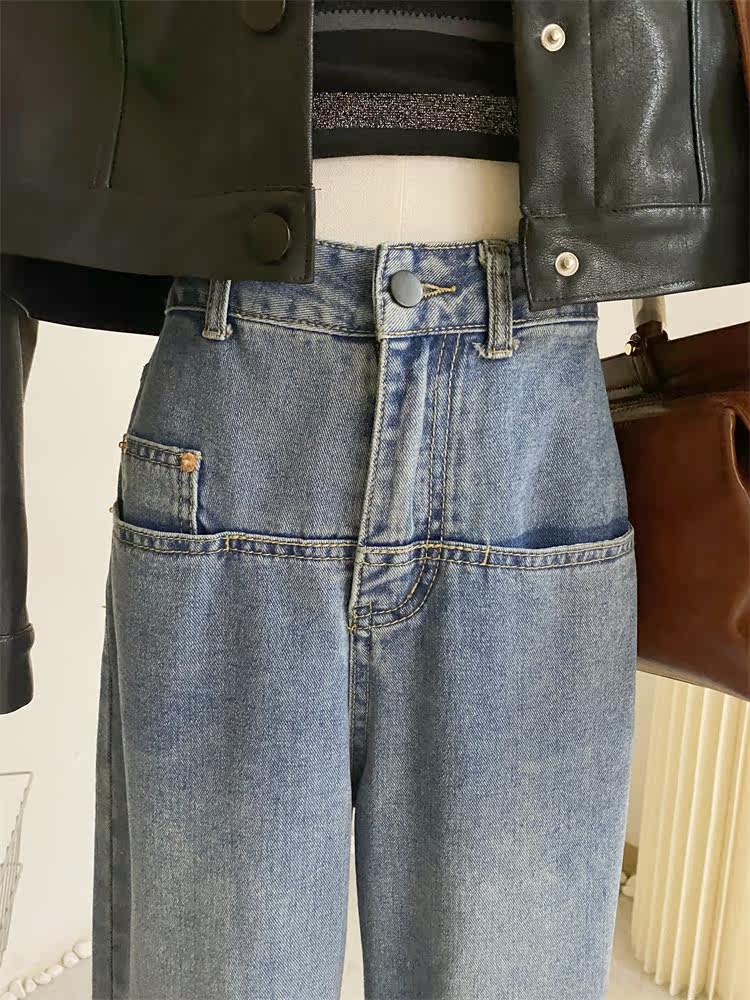Ретро джинсы, дизайнерские штаны, в корейском стиле, оверсайз, высокая талия, свободный прямой крой, стройный силуэт