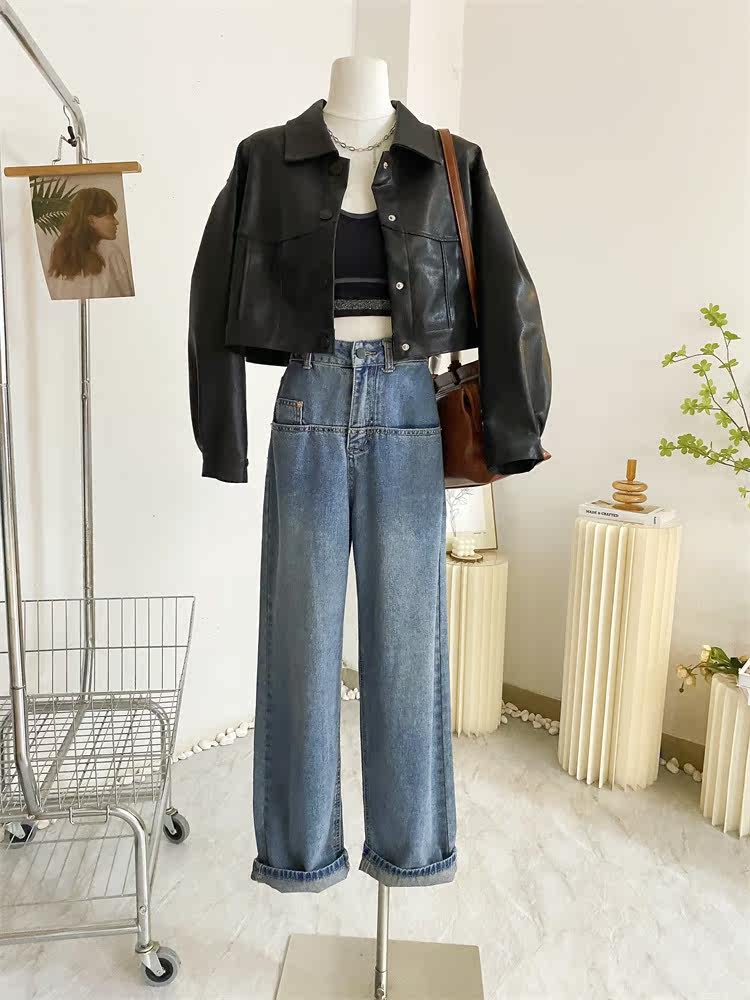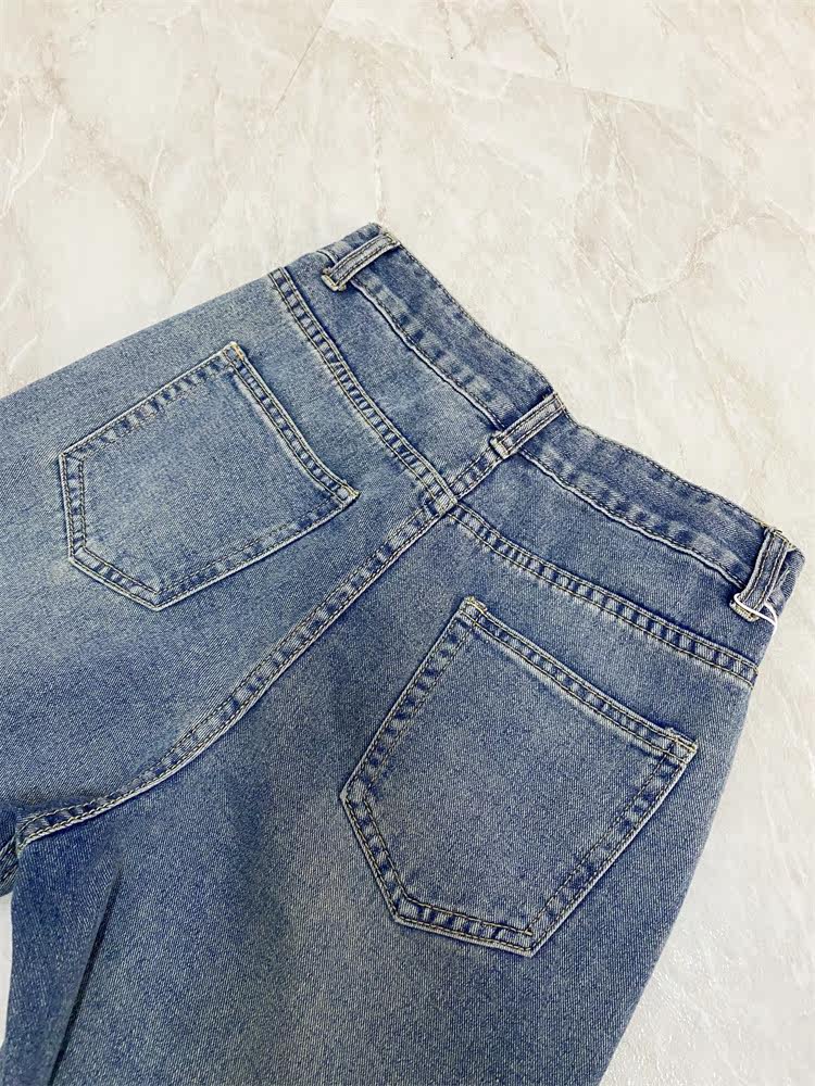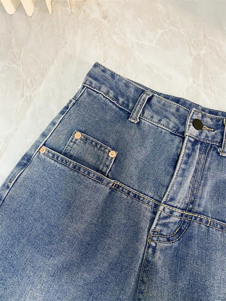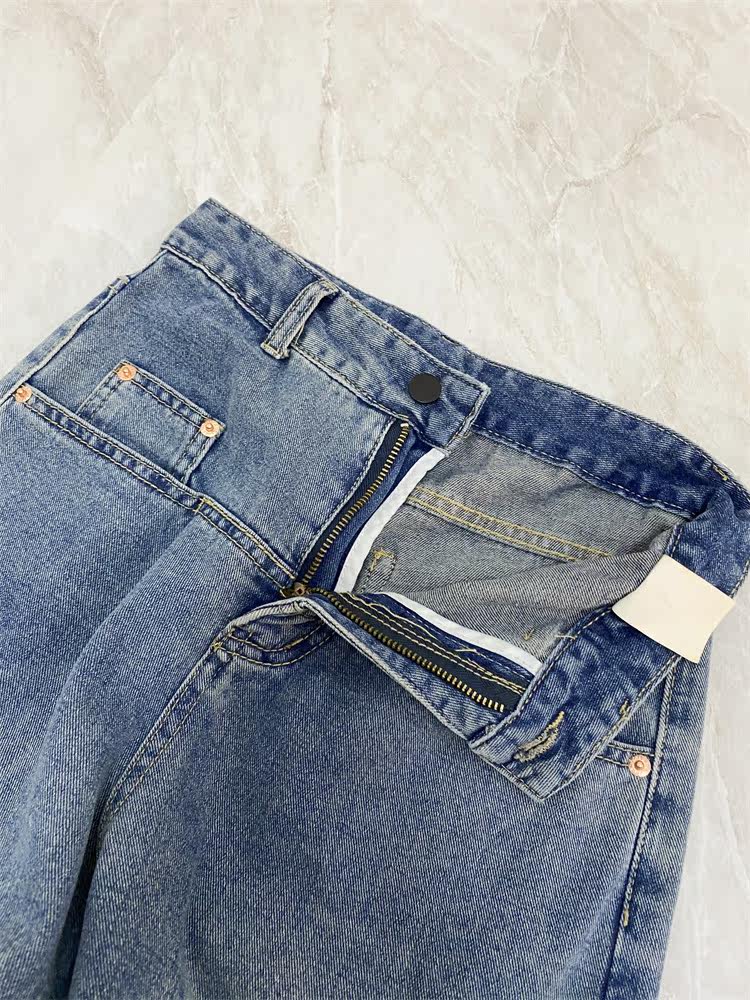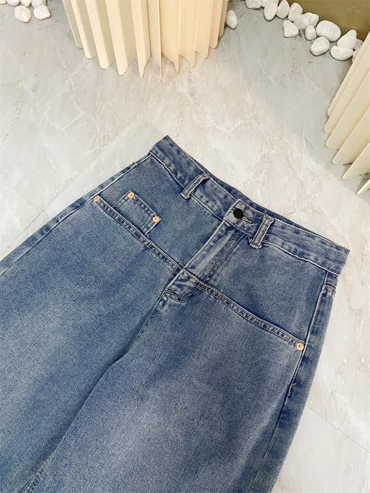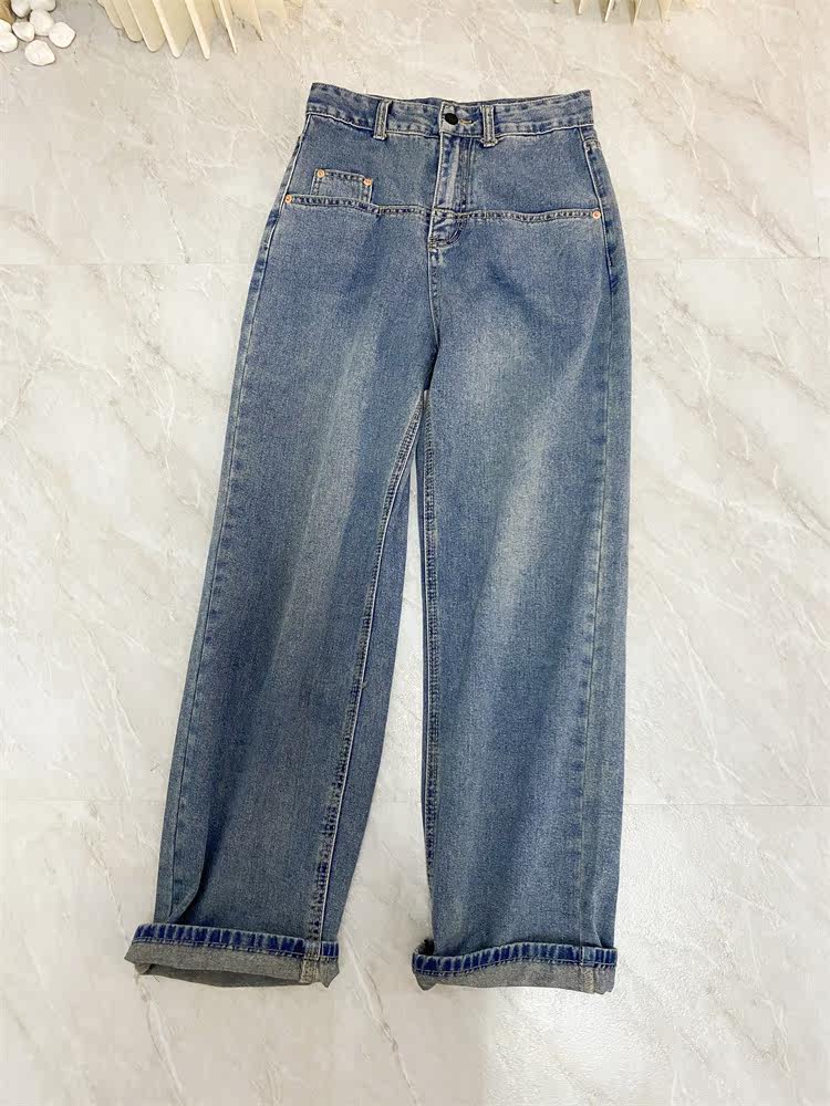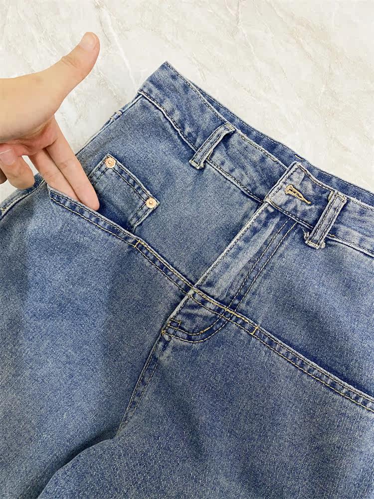 Ретро джинсы, дизайнерские штаны, в корейском стиле, оверсайз, высокая талия, свободный прямой крой, стройный силуэт