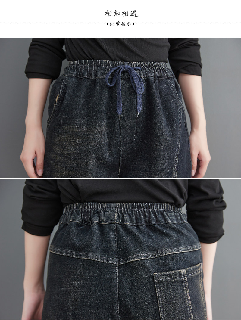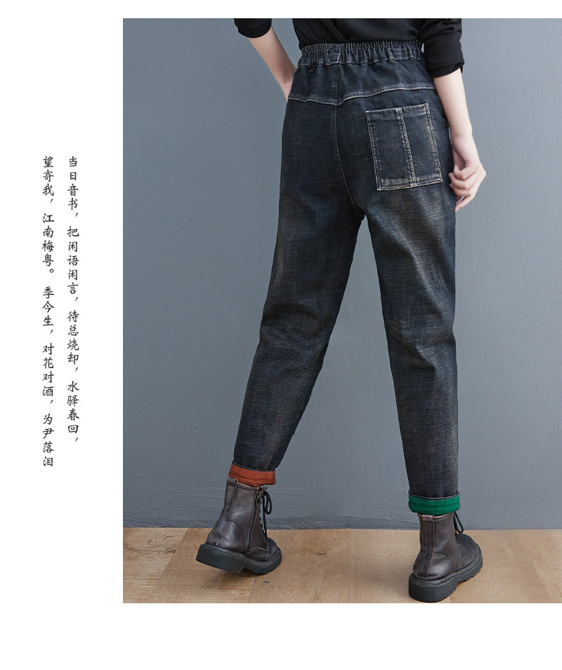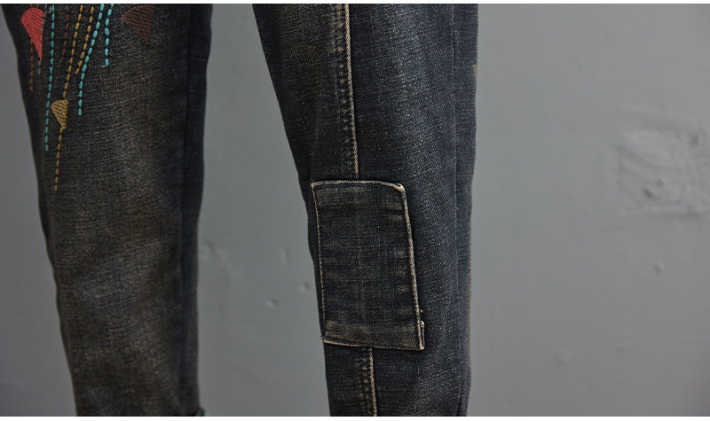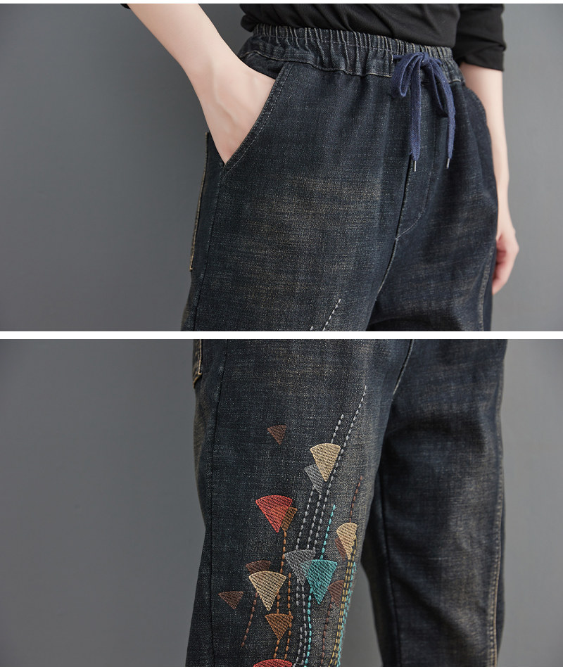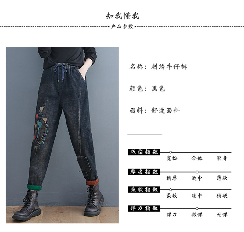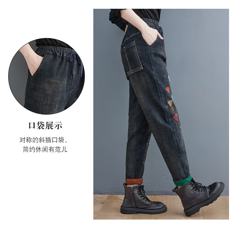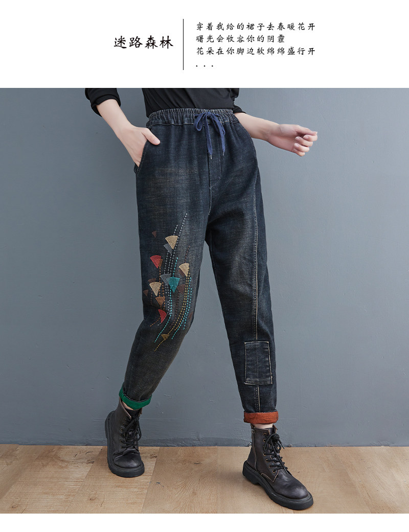 Утепленные штаны, демисезонные джинсы, леггинсы, с вышивкой, эластичная талия, высокая талия, свободный крой