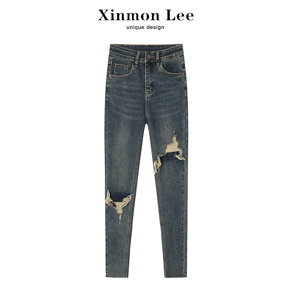Синмонли порно плотные джинсовые брюки Slim Feet Feet женский 2024 Новый дизайн ниши привязки