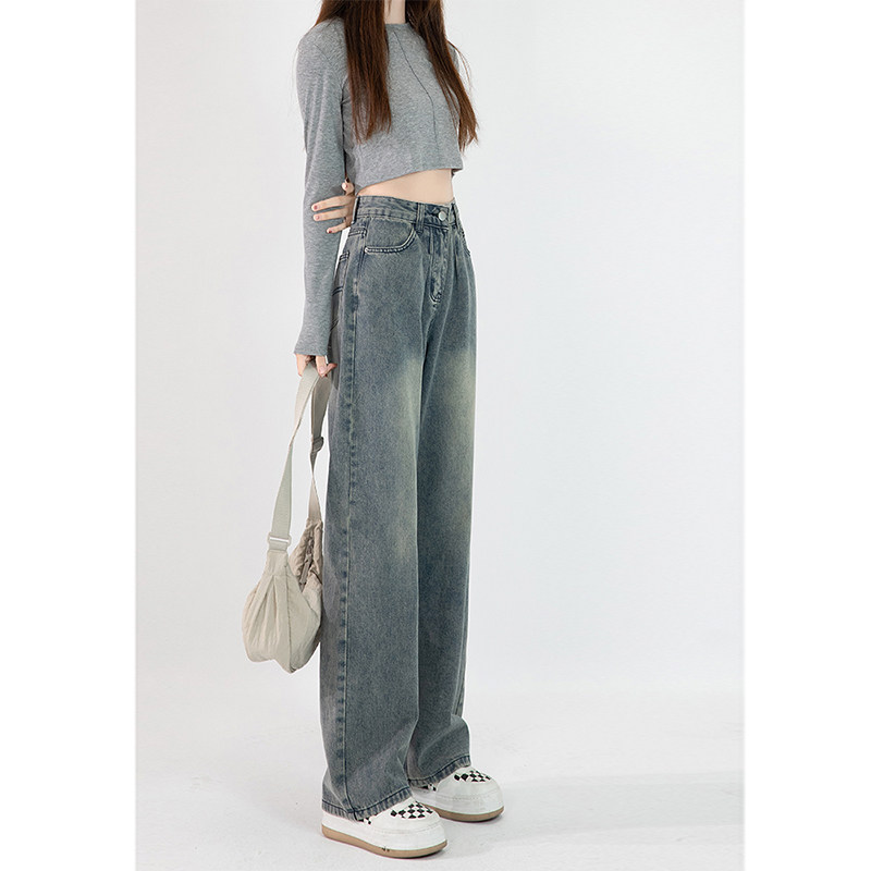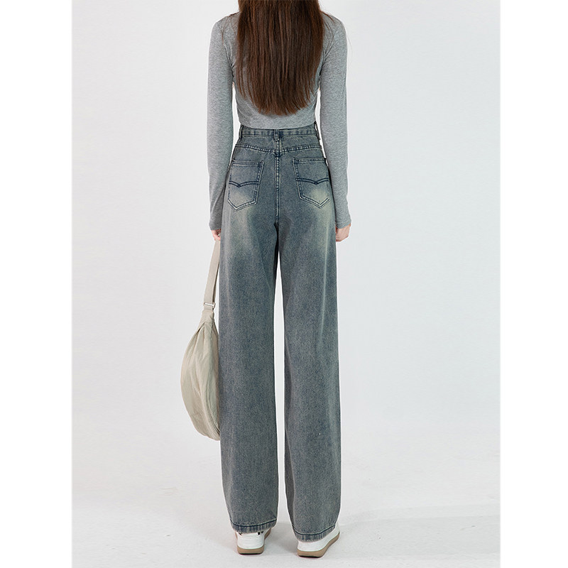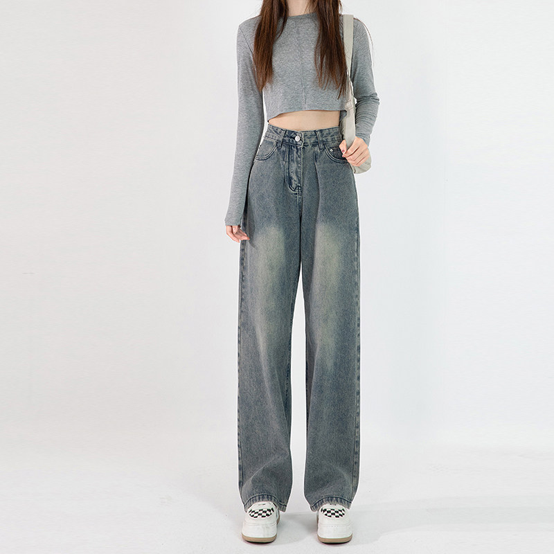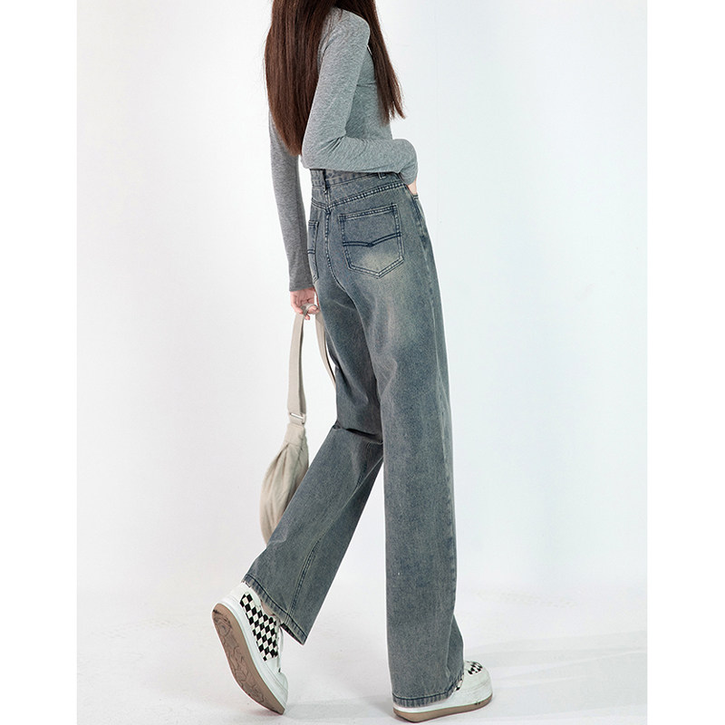 Приталенные синие джинсы, штаны, для формы тела «груша», высокая талия, большой размер, свободный крой