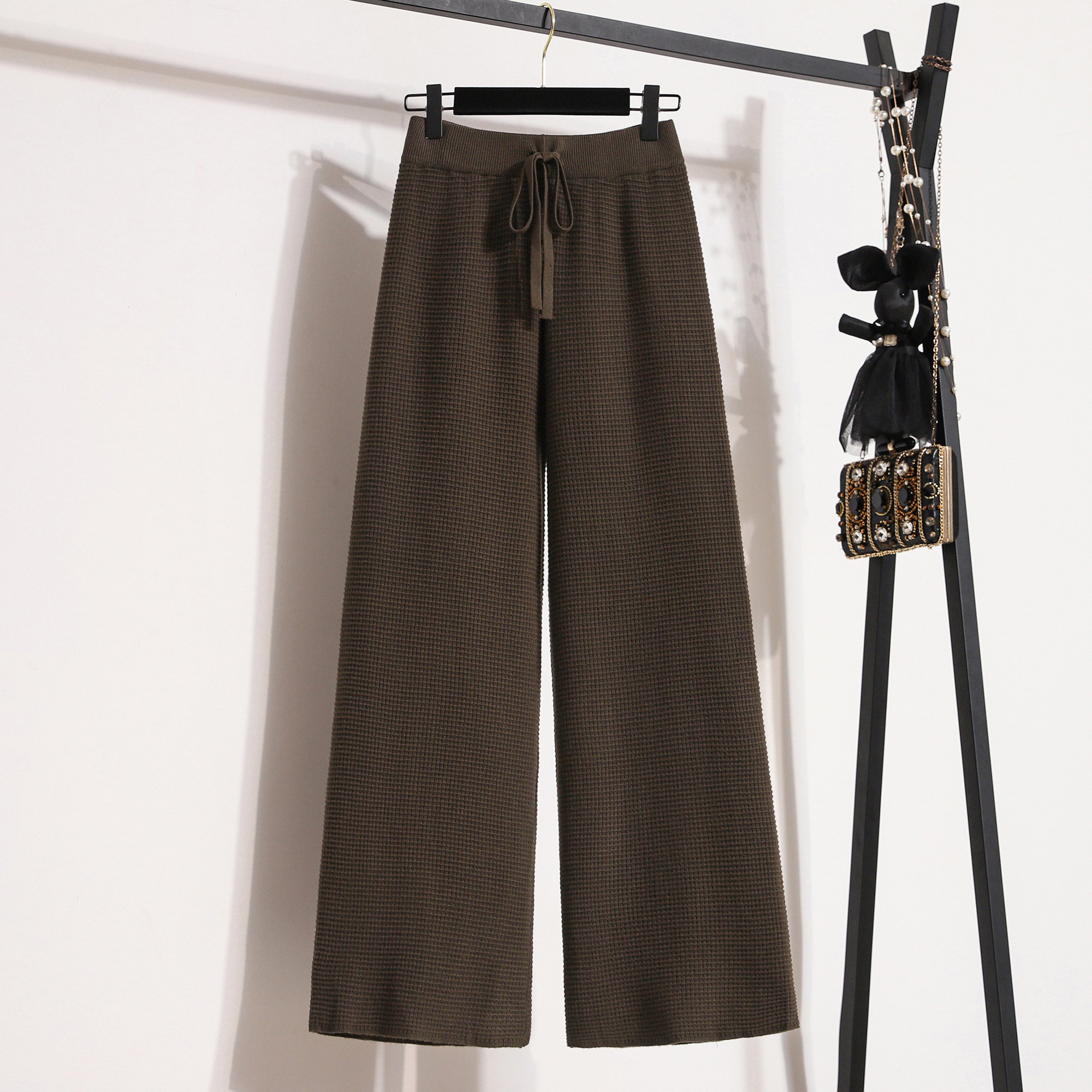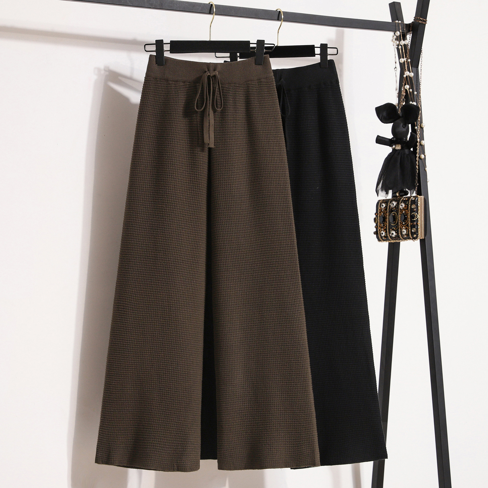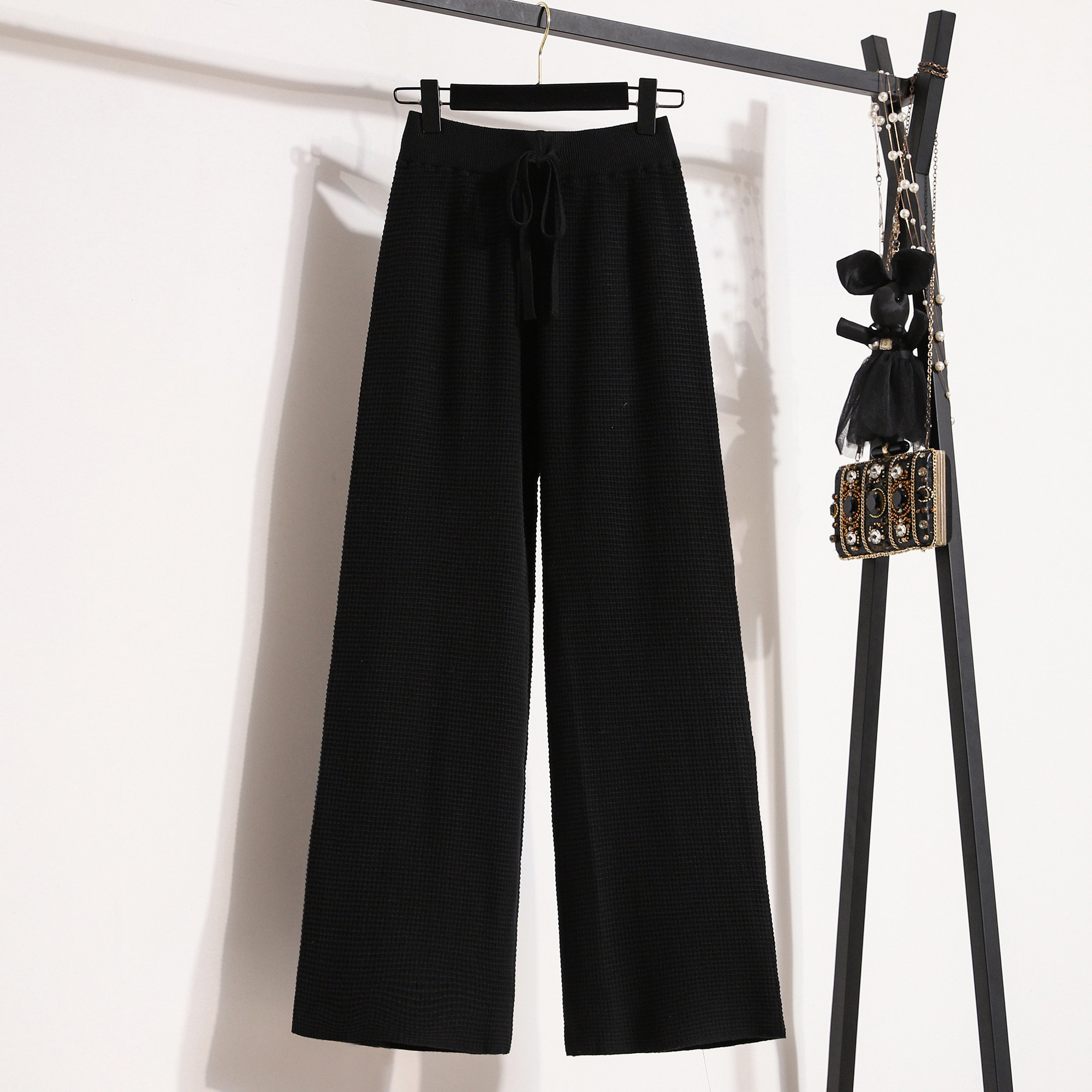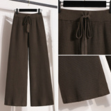 Трикотажные штаны, демисезонные леггинсы для отдыха, на шнурках, увеличенная толщина, свободный прямой крой, большой размер, высокая талия, подходит для полных девушек