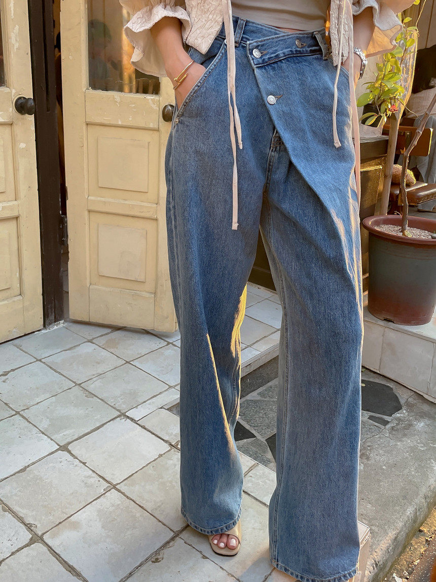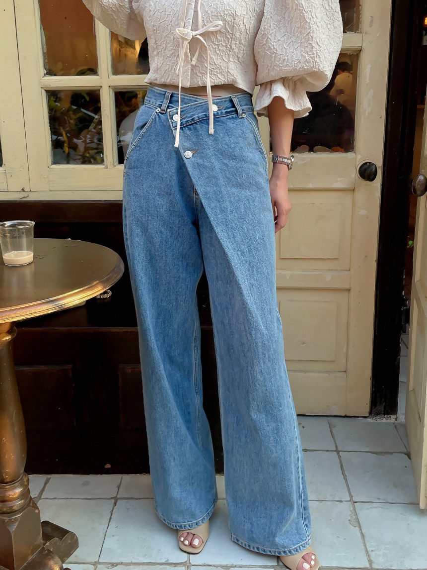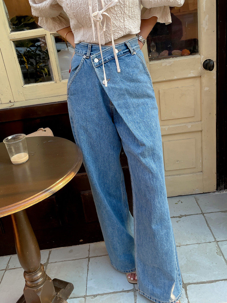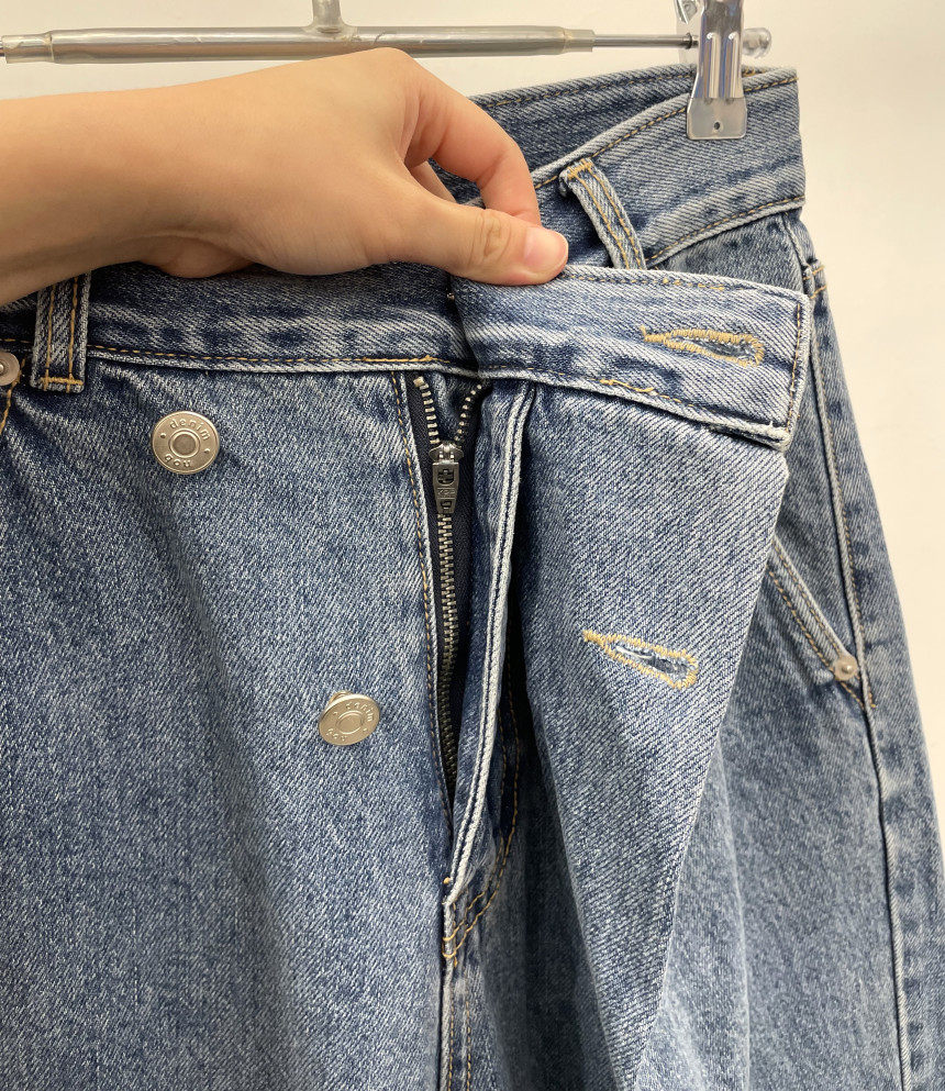 Асимметричные дизайнерские джинсы, женские штаны, осенние, высокая талия, свободный крой