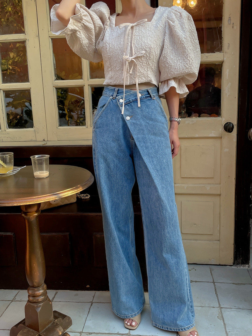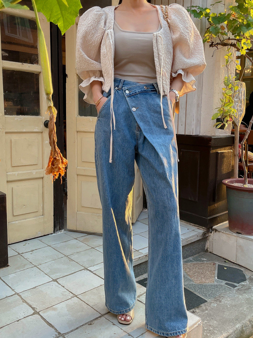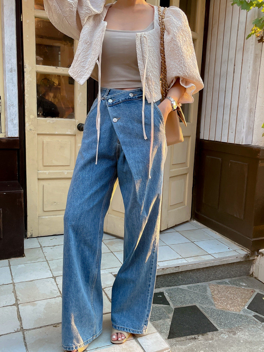Асимметричные дизайнерские джинсы, женские штаны, осенние, высокая талия, свободный крой